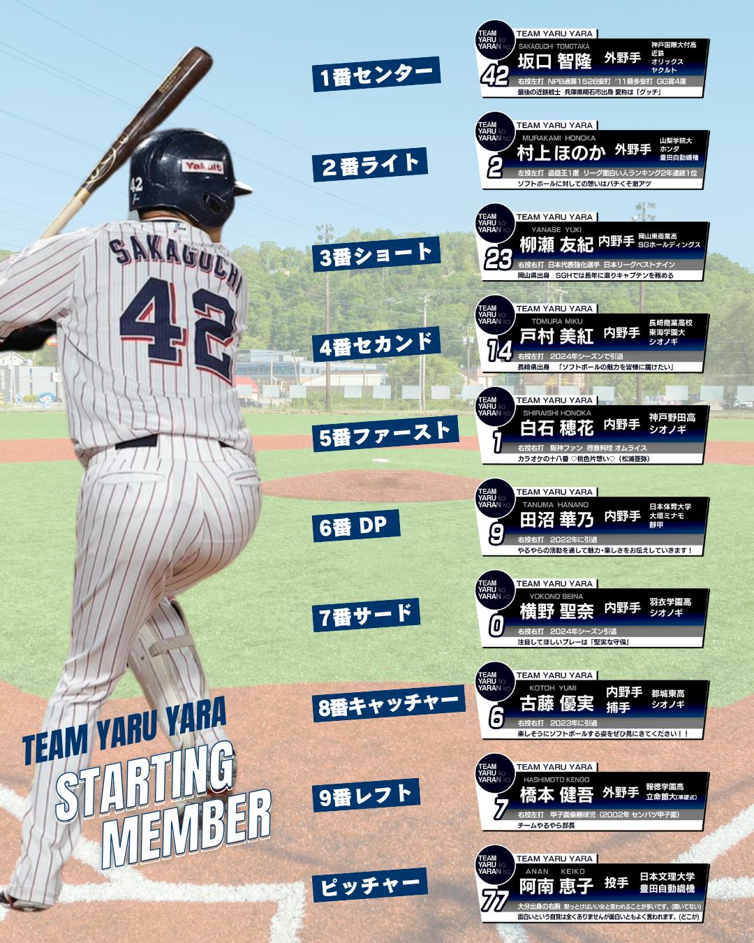 坂口智隆監督より3月23日(日)に行われる試合のスタメンを発表させていただきます!
