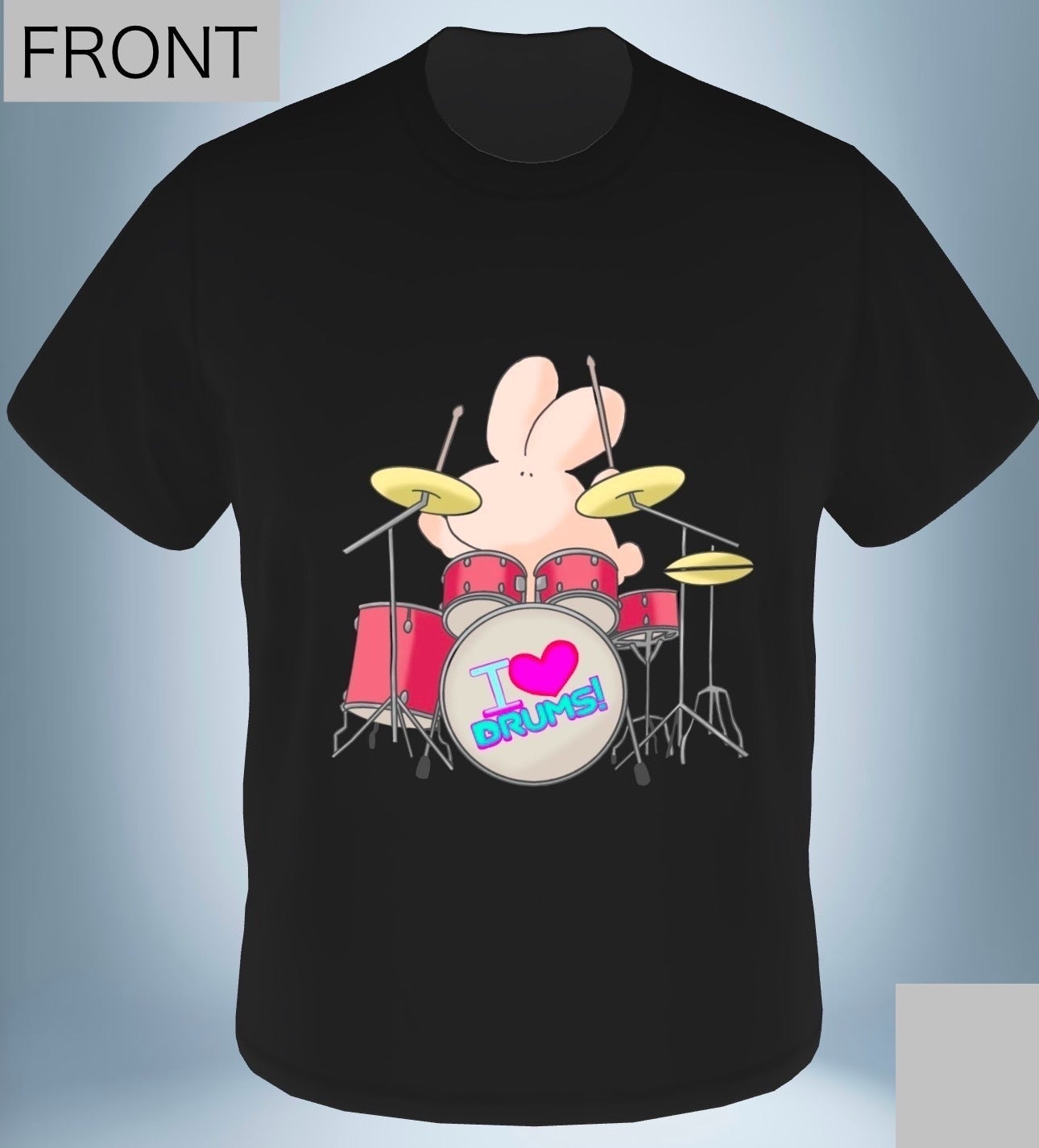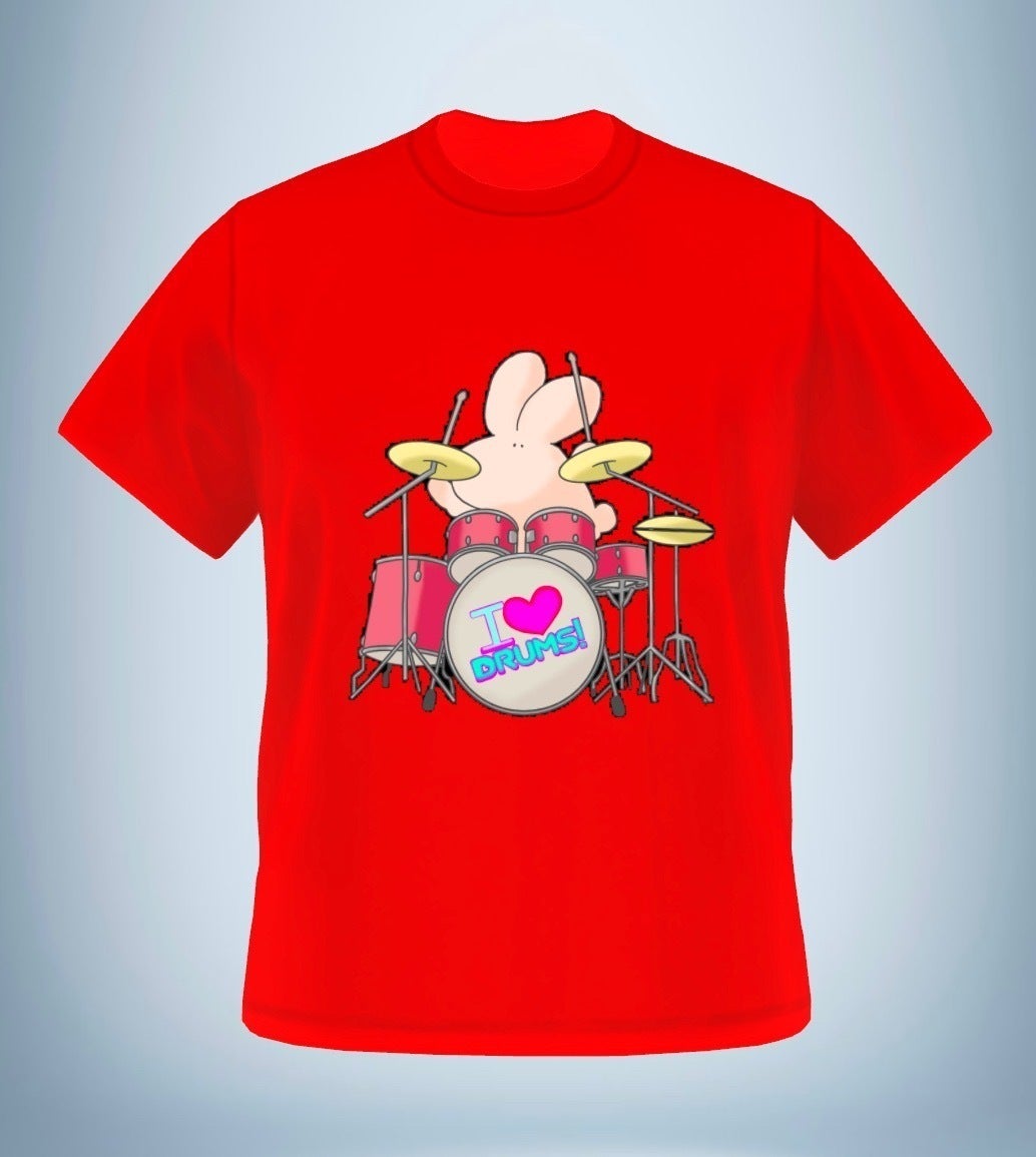 大分県在住のデザイナー、''はるてんぐ"先生に描き下ろしていただいた【ウサ山チュー太郎/ドラムバージョン】を配置した、オリジナルTシャツ・ボールペン・キーホルダーを準備致しました!
