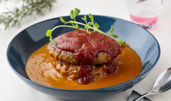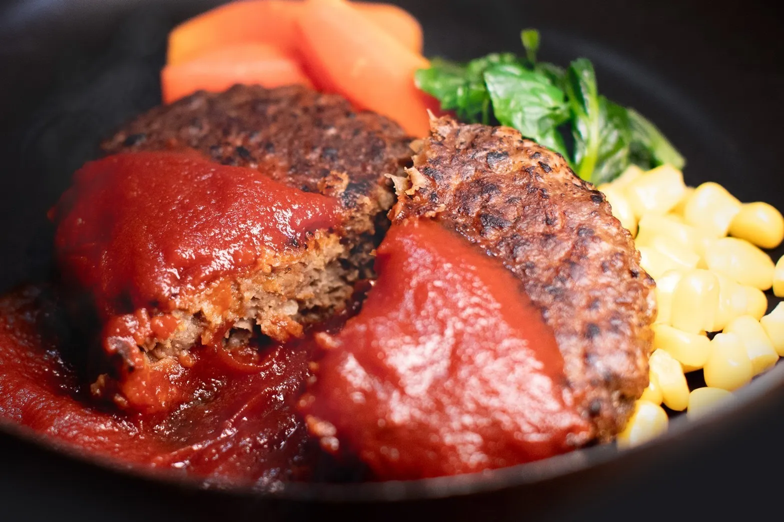 - ラーメンだけでなく、カレーをリニューアルし、ハンバーグやミートボールなど肉感たっぷりに見える一皿も動物性不使用で実現。