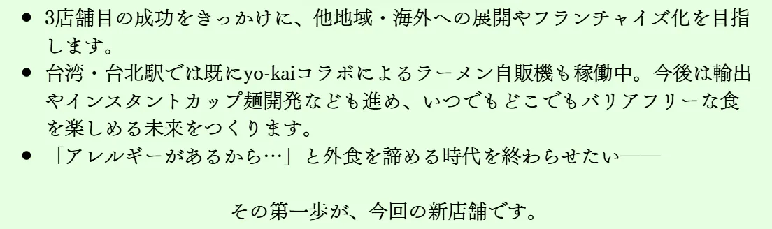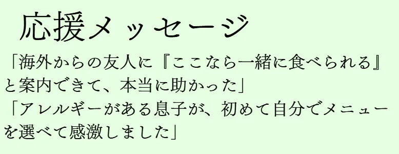 こうした声をたくさんいただくたび、私たちは食のバリアフリーの必要性を痛感します。まだ少数派かもしれない。でも、“誰もが普通に食を選べる社会”こそが本来あるべき姿だと信じています。