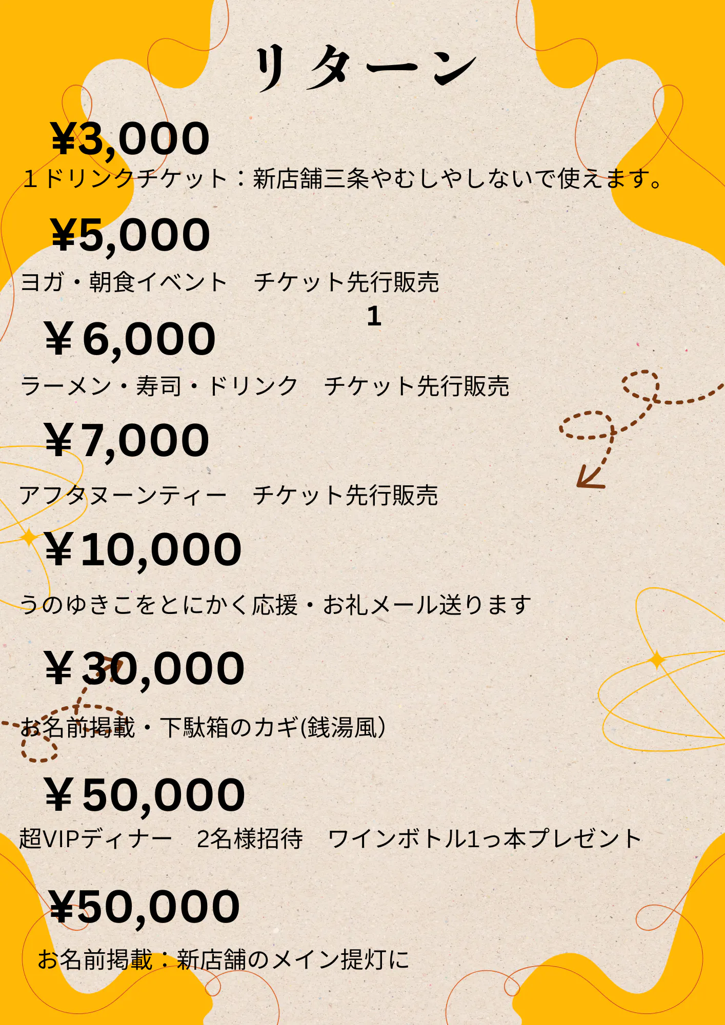 支援していただいた方には、リターンを通じて新店舗オープン後に感謝の気持ちを形にしてお届けします。皆さまの応援で、3店舗目を成功させ、アレルギーや宗教的制限のある方も“同じ卓”で笑顔を咲かせる場を広げましょう!