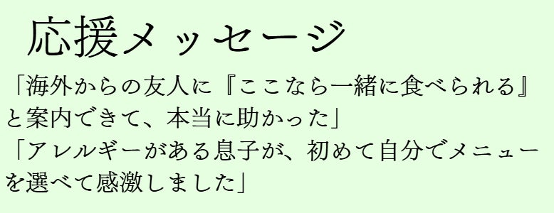 べジタリアンやヴィーガンの方からは「安心して食べられるものがあった」と感動の声。 - この事業の必要性を痛感!