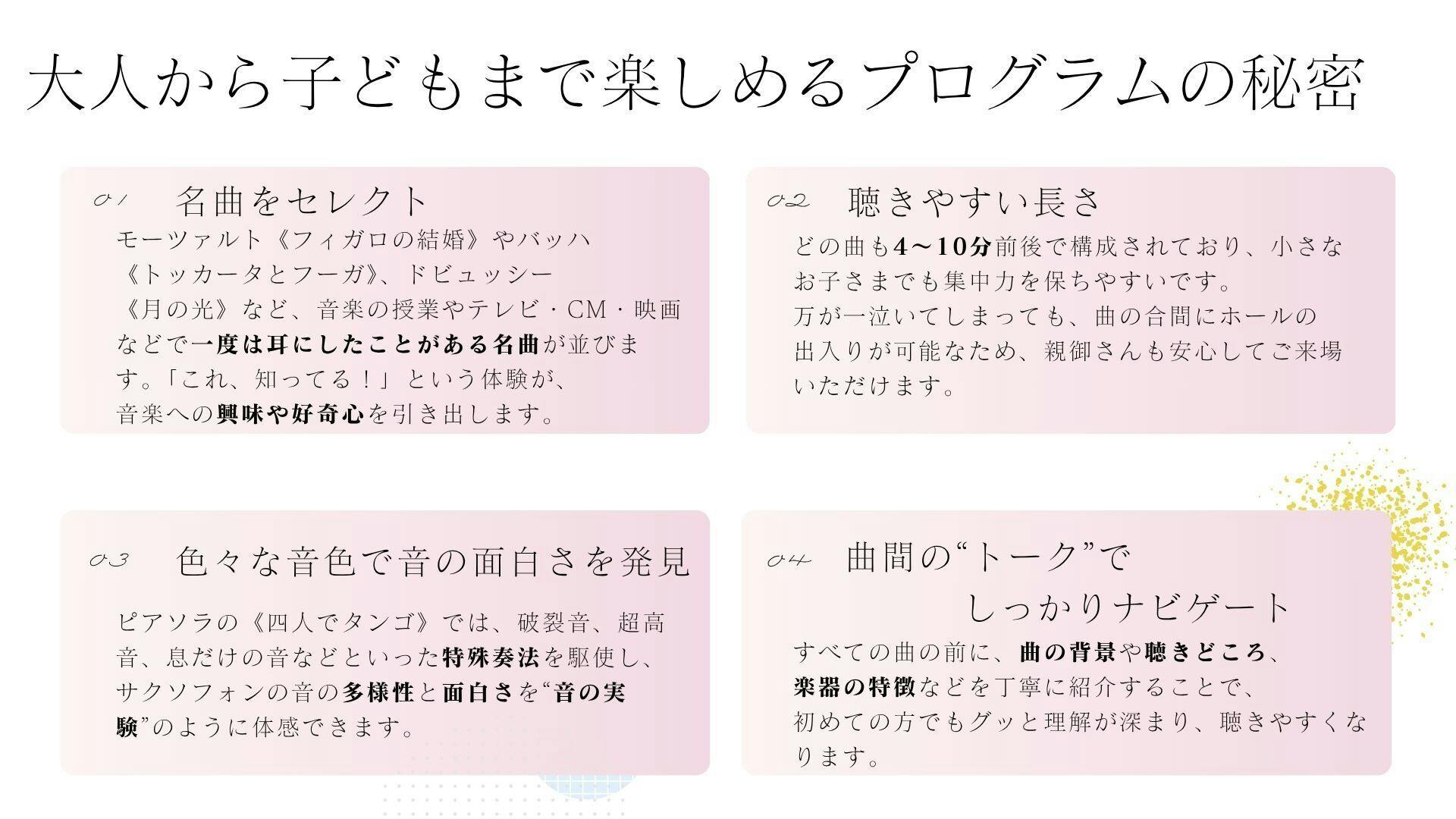 多くの子どもたちに、サクソフォン四重奏で本物の音楽体験を届けたい。