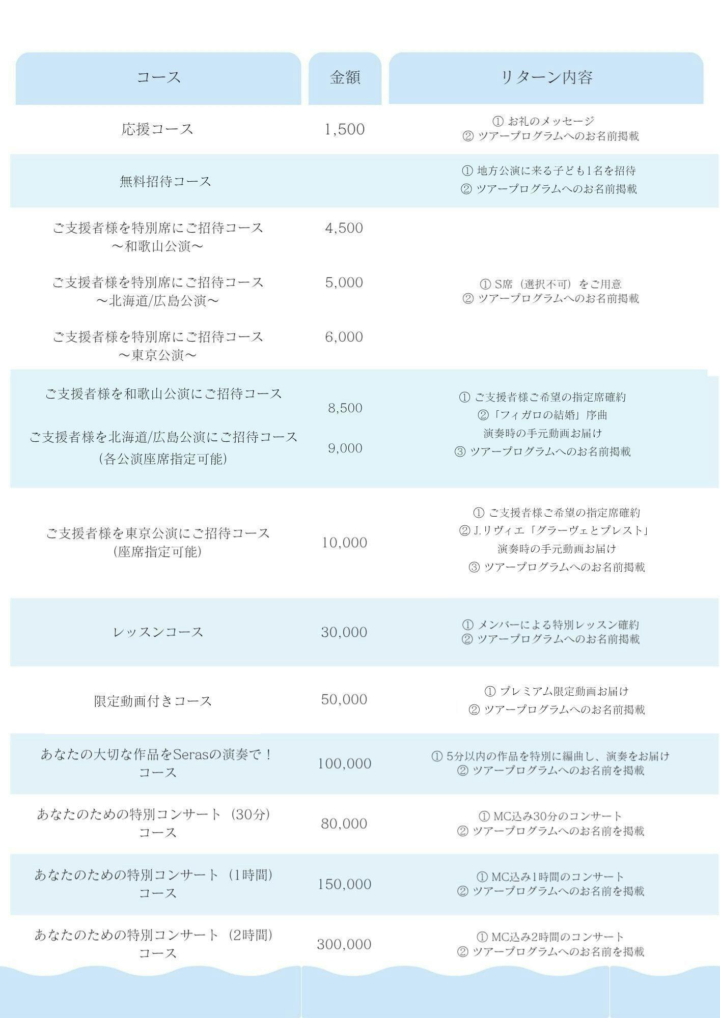 2025/10/01 17:32こんにちは。Seras Saxophone Quartetです。この度は、クラウドファンディング「〖プロの演奏を子どもの未来へ〗Serasコンサート無料招待プロジェクト」にご支援・応援をいただき、誠にありがとうございました。おかげさまで、49名の方から535,000円のご支援をいただき、無事プロジェクトを終了することができました。ご支援くださった皆さまに、心より感謝申し上げます。今回のプロジェクトを通して、合計70名のお子さまをコンサートに無料ご招待することが可能となりました。音楽を通じて、子どもたちの未来に少しでも豊かな体験を残すことができればと願っております。本日、リターンのご案内・発送を開始しました。また、公演の様子や子どもたちの反応も活動報告として共有いたしますので、ぜひ楽しみにお待ちください。このプロジェクトの達成は、皆さま一人ひとりのお力添えのおかげです。いただいた応援を大切に、音楽を通してお返ししていけるよう、活動を続けてまいります。改めまして、心からの御礼を申し上げます。本当にありがとうございました!Seras Saxophone Quartet 一同 もっと見る
