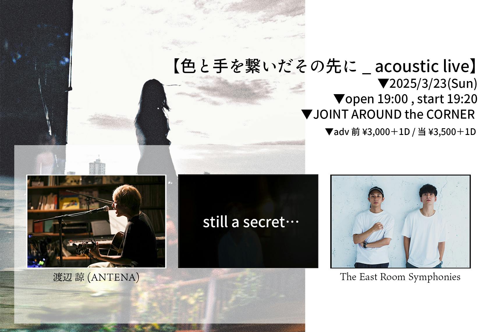 2025/02/09 20:00【出演アーティスト②】渡辺 諒 (ANTENA)_________________________2017年10月 1st mini Album「モーンガータ」でメジャーデビュー。 Vocal 渡辺の地声とファルセットの緩やかな境界線を武器に、人間の機微を歌い、脈々と受け継がれてきた邦楽のメロディラインと、フレンチポップから影響を受けたエレクトロなどの洋楽サウンドテイストを波に乗せる。"ライフソング"をテーマに懐かさしさを感じるメロディと身体を揺らしたくなるサウンドが唯一無二の、心地良く癖になる楽曲へと昇華されている。同作品は「第10回CDショップ大賞2018」の「東北ブロック賞」を受賞。2018年4月「ずっとベイビー」を同年6月にデジタルシングルとしてリリースし、Spotifyのバイラルトップ50(日本)にて初登場1位(2日連続)獲得。同年11月デジタルシングル「深い 深い 青」をリリース、2019年1月2nd mini Album「深い 深い 青」をリリース。ツアー「NYTT LANDSKAP」東京、仙台、大阪公演をソールドさせ大盛況となる。2020年フルアルバム「風吹く方へ」リリース。リリースツアーは全公演ソールドアウトとなるがコロナ禍による活動自粛のため中止となる。2022年4月、活動休止を発表。2025年1月新宿ロフトでのワンマンライブより活動再開。同年5月よりフロアワンマンライブツアー「mysig tour 2025」を発表。_________________________2025.3.23(Sun) @JOINT AROUND the CORNER【色と手を繋いだその先に_acoustic live】[act]The East Room Symphonies 渡辺 諒 (ANTENA)and more …[info]open 19:00 / start 19:20前売り ¥3,000+1D当日券 ¥3,500+1D▼JOINT AROUND the CORNER 〒150-0001 東京都渋谷区神宮前3丁目25−18 104 THE SHARE もっと見る