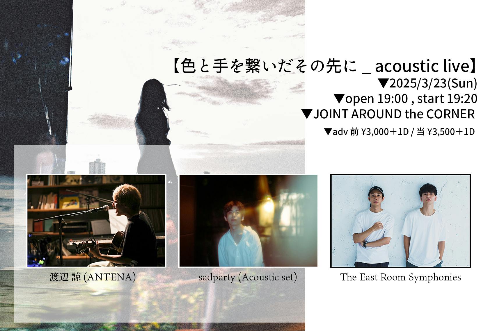 2025/02/10 20:00【出演アーティスト③】sadparty_________________________2024 年 12 月始動。「孤独に寄り添うダンスミュージック」をテーマに、ジャンルの垣根を超えた音楽表現を追求するシンガーソングライター。10代から培ってきたソングライティングのスキルを活かし、ヒップホップやクラブミュージックにインスパイアされたサウンドでダークな世界観を演出する。_________________________2025.3.23(Sun) @JOINT AROUND the CORNER【色と手を繋いだその先に_acoustic live】[act]渡辺 諒 (ANTENA)sadparty (Acoustic set)The East Room Symphonies (五十音順)[info]open 19:00 / start 19:20前売り ¥3,000+1D当日券 ¥3,500+1D▼JOINT AROUND the CORNER 〒150-0001 東京都渋谷区神宮前3丁目25−18 104 THE SHARE もっと見る