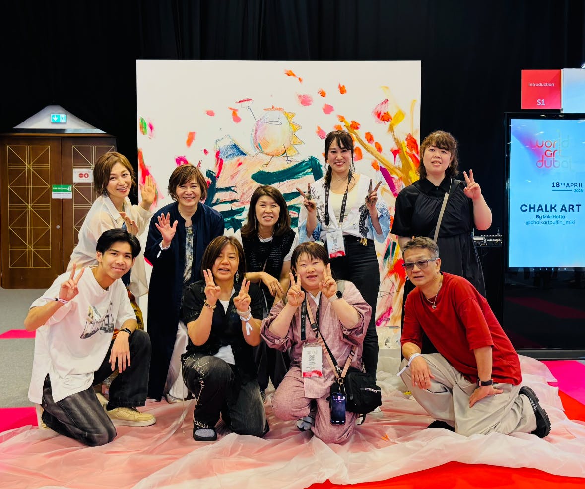 世界中のアーティストが集まる「World Art Dubai」に絵を出展し、無事に終えることができました。ただ絵を展示するだけではなく現地でのライブパフォーマンスや世界中のアーティストとの出会いそして、自分の「当たり前」がゆっくりほどけていくような、そんな貴重な体験をすることができました。お声がけがなければ、現地でのライブパフォーマンスにも立てませんでした。この機会をくださった現地スタッフの皆さまマネージャーやスタッフのみんな生徒さん友人、家族応援してくださった全ての方に心から感謝の気持ちでいっぱいです。本当に本当にありがとうございます。今回の展示を通して、「こうでなければ」という枠を超えて、世界には、色々な表現と価値観が広がっている。ということを感じました。その「違い」を受けとめ自分の感性に取り入れていきたいと思いました☺︎本当に、実際に現地に行ってみないとわからないことって、たくさんあるなぁ☺︎テレビで見ることと全然違うこともある。今回は、文化も表現も価値観も、違うところへ飛び込んでギャラリーや街を歩きながらたくさんの大好きなアートにたくさんふれてきました!!!私はやっぱり、アートが好きで描くことも、見ることも、届けることも誰かの心に何かを残したいという気持ちも。チョークアートは、私にとって「仕事」であり、生き方です。この10年、遊びではなく誇りをもって向き合ってきました。そして今回、改めて実感しました。アートは、ひとりで完成するものではないということ。見てくれる人がいて、応援してくれる人がいて、初めて“届ける”ことができる。現地まで足を運んでくれた生徒さんたち生徒さんのお友達。高校と幼稚園の同級生も来てくれました。来れなかった生徒さんや多くの方からのあたたかい声援。心から嬉しく、何よりの力になりました。この展示を通して、感じたのは人とのつながりこそ私にとって最大のエネルギーだということ。支えてくれる人がいたから、ここまで来られました。本当に、ありがとうございます。まだまだ、私の知らない世界はたくさんある。だからこそ、「行ってみる」「やってみる」ことを大切にしていきたい。実際に一歩踏み出すことで、言葉では表せないような新しい価値観に出会えるから、いきたい。いろいろな土地を訪れ、たくさんの人と出会う中で、「正解」や「常識」は一つではないことに、気づき。。文化の違い、生き方の違い、考え方の違いそのすべてが、私の世界を広げてくれました。いろんな国の人と出会って、語って、笑って、違いを前にしたとき、不思議と心が広がっていく。受け入れるという心が、自分の中に育っていく感覚。もちろん、ルールや常識って大切。でも、ねばならないばかりに縛られててしまうとほんとうの自分の声に、きっと気づけない。もっと楽に、こうしなきゃという考えを一度外し、自分らしく生きていい。そのことを、私はあの地で教わった気がしますだからこれからも、私は世界に出ていきたい。知らなかった感性や考え方にふれて、自分の中の景色をまた広げて、その体験を、チョークアートで届けていきたいんです。ただ「描く」だけじゃない。誰かが笑顔になる。そんなアートを届けたい。この経験を、感謝とともにこれからのレッスンや制作活動にしっかりと還元していきます!!☺︎