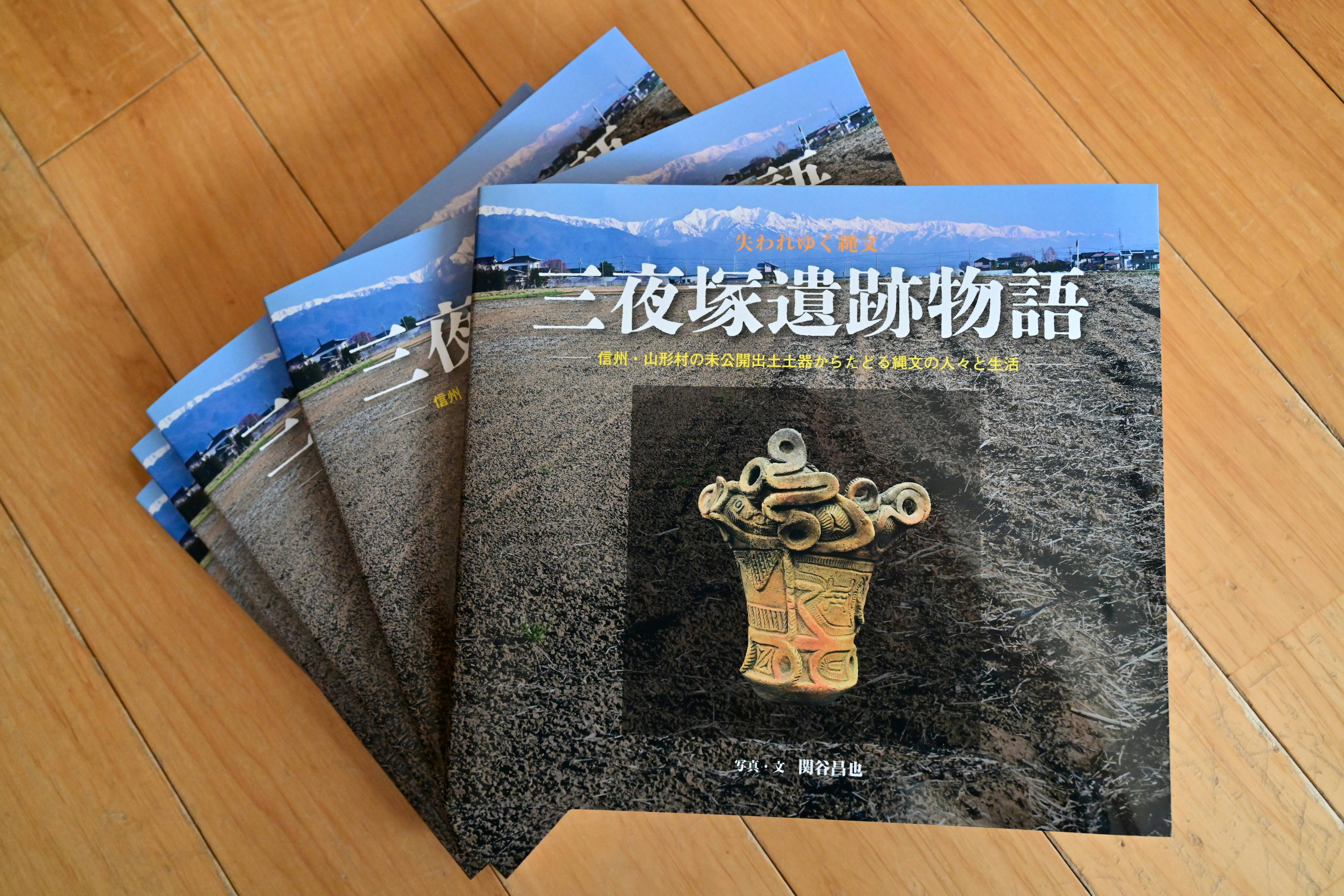これらの土器は三夜塚縄文人の生活の中心に存在して、あらゆる生活シーンで使い分けられ縄文人と共に有ったと想います。そこでこの縄文土器を中心とした、三夜塚遺跡の縄文人達の生活を物語にして、 私の縄文土器写真と風景写真を組み合わせた写真文集を出版する事にしました。 この故郷の貴重な遺跡を全国の多くの人に知ってもらい、知名度と関心を高めようと思い立ちました。
