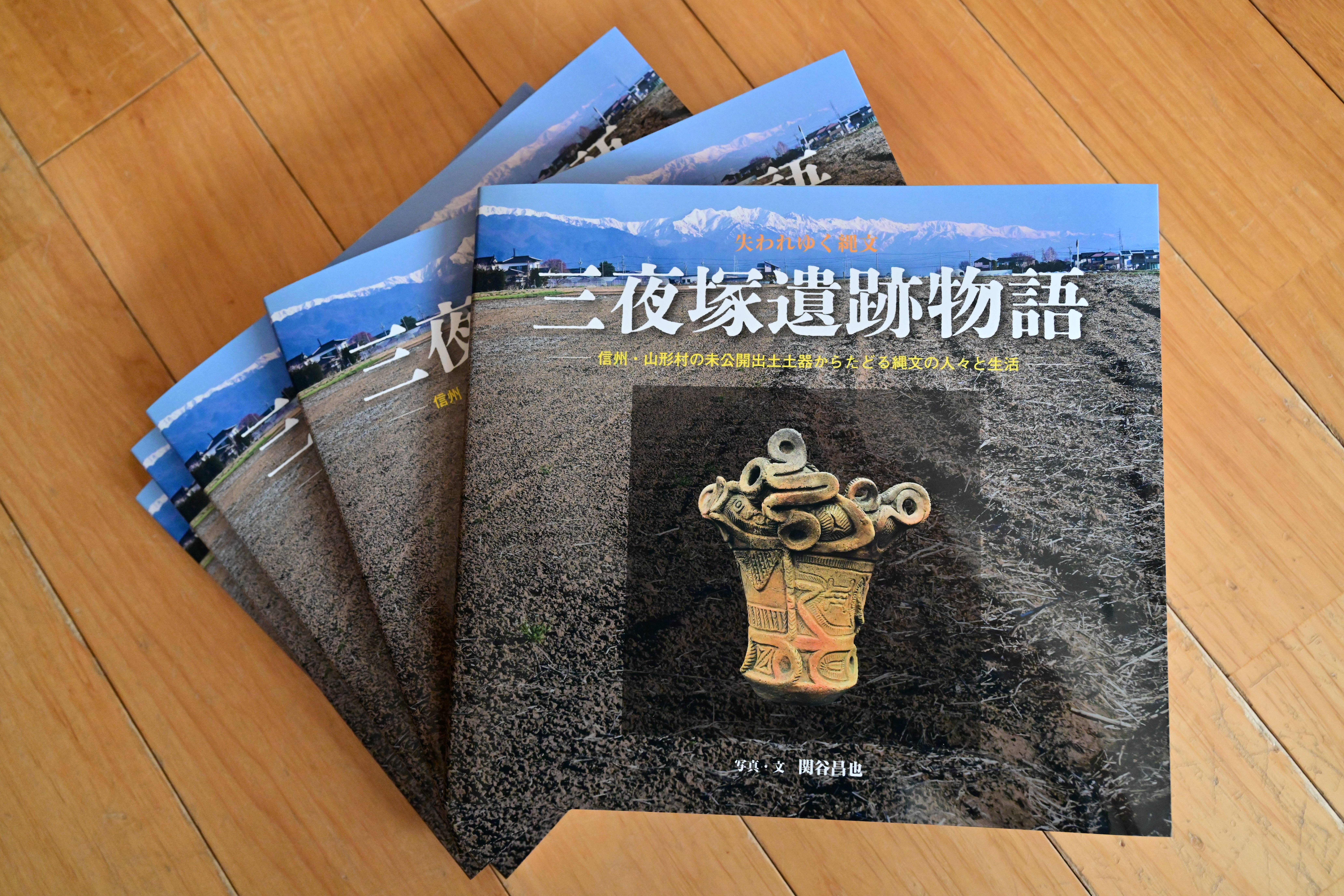 しかし今までの小規模な緊急発掘で有りながら、貴重な遺物(県宝に指定二点等)が出現しています。この貴重な遺跡を全国の皆さんに知ってもらい、関心を高めるため、既に『三夜塚遺跡物語』を自費出版し松本地方の有名本屋さん、博物館等で販売中です。