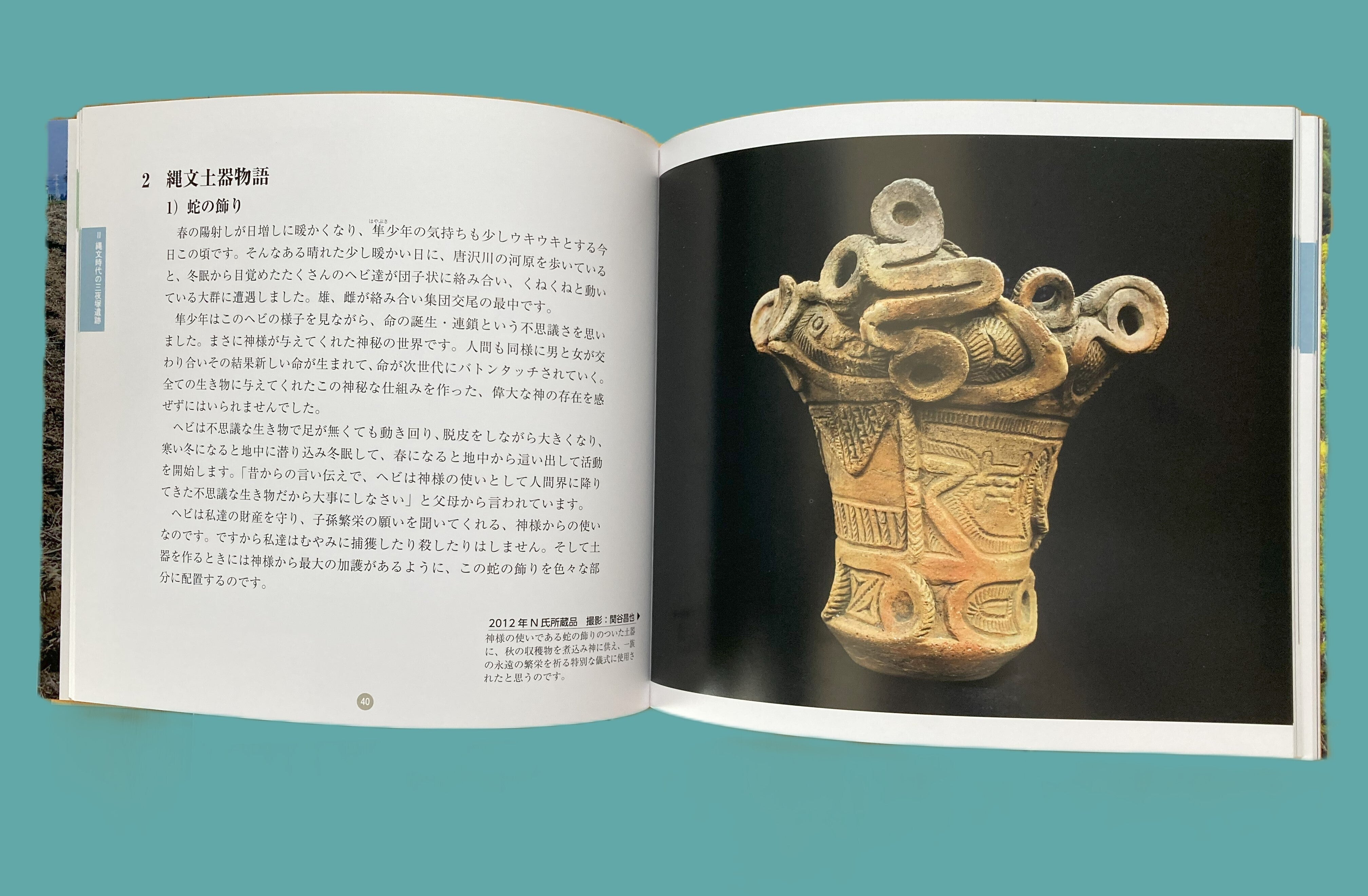これらの土器は三夜塚縄文人の生活の中心に存在して、あらゆる生活シーンで使い分けられ縄文人と共に有ったと想います。そこでこの縄文土器を中心とした、三夜塚遺跡の縄文人達の生活を物語にして、 私の縄文土器写真と風景写真を組み合わせた写真文集を出版する事にしました。 この故郷の貴重な遺跡を全国の多くの人に知ってもらい、知名度と関心を高めようと思い立ちました。