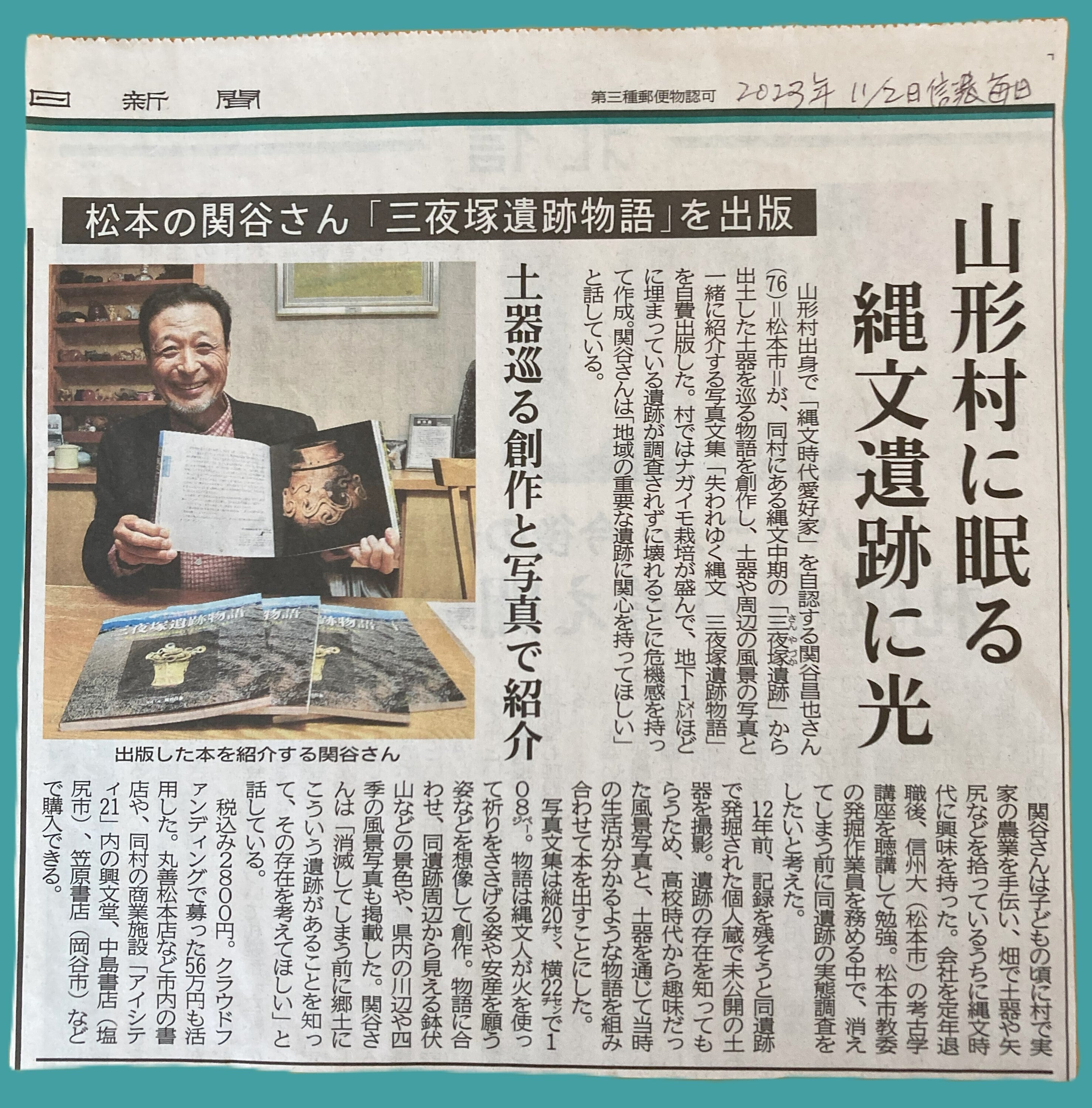 今回、松本盆地にある「三夜塚遺跡」が消滅の危機に瀕していることを憂い、この問題に多くの人に関心をもって貰うため、私のこれまでの経験と知識を活かし、三夜塚遺跡縄文人の生活を物語にした本を出版しました。 皆さまと共に貴重な文化遺産を守るための活動をしていきたいと思います。