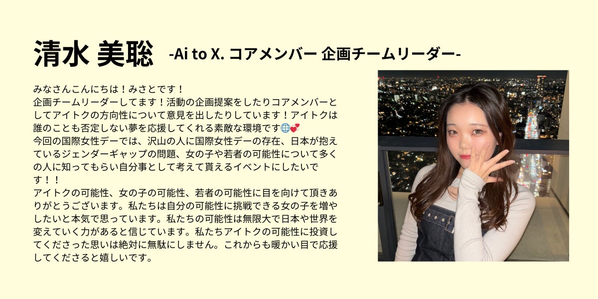 今回クラウドファンディングをすると決めたのは、Ai to X. として最も大切にしていきたい日でもある国際女性デーに向けての資金調達のためでもありますが、それだけではありません。