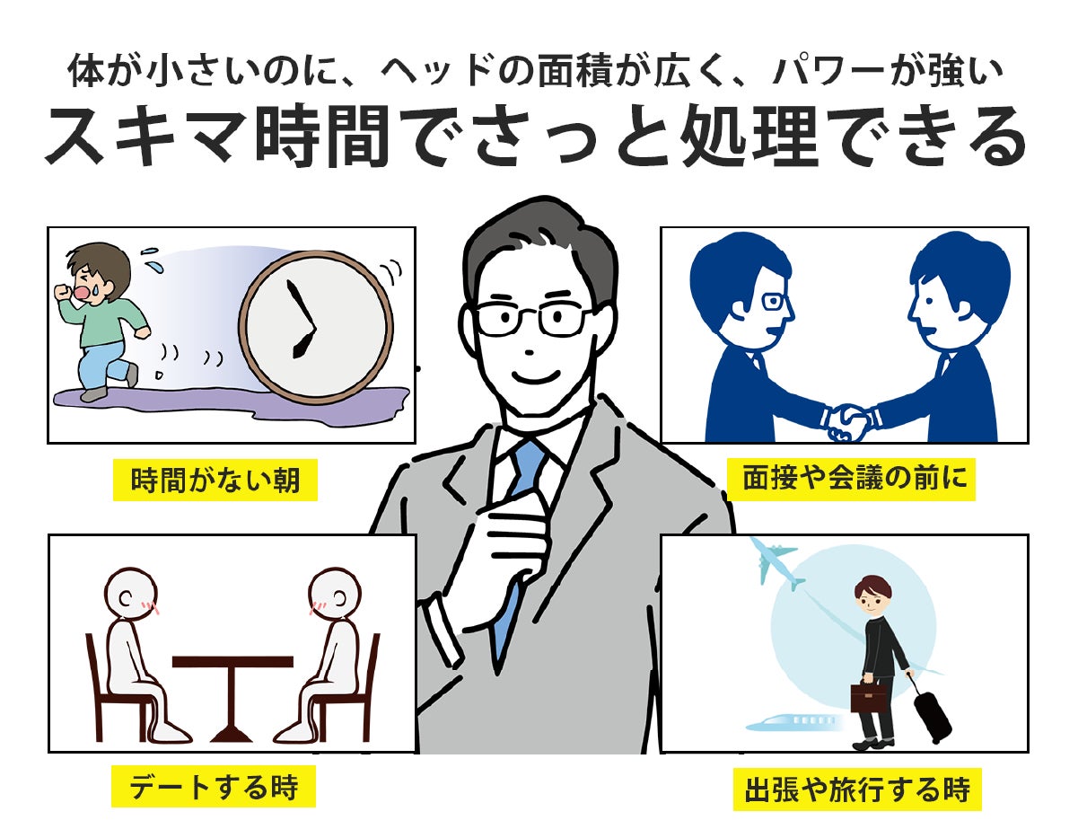 時間がない朝や外出先での急なお手入れに!超小型電動合金シェーバーが活躍します。