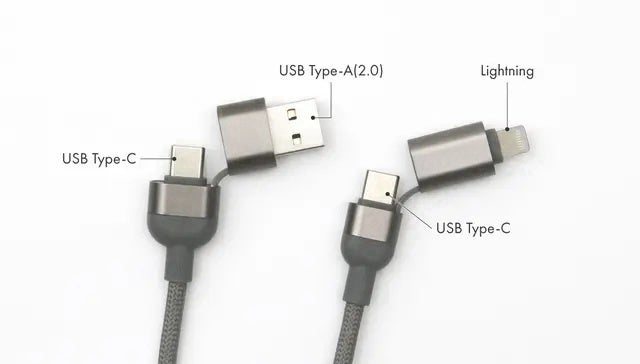 ①Type-C⇔Type-C ②Type-C⇔Type-A ③Type-C⇔Lightning ④Type-A⇔Lightning