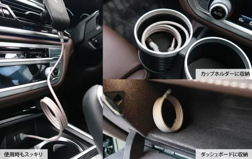 車の中のような狭い空間でもスッキリまとめて使用が可能。使用時も使用後も、ケーブルが邪魔になりません。