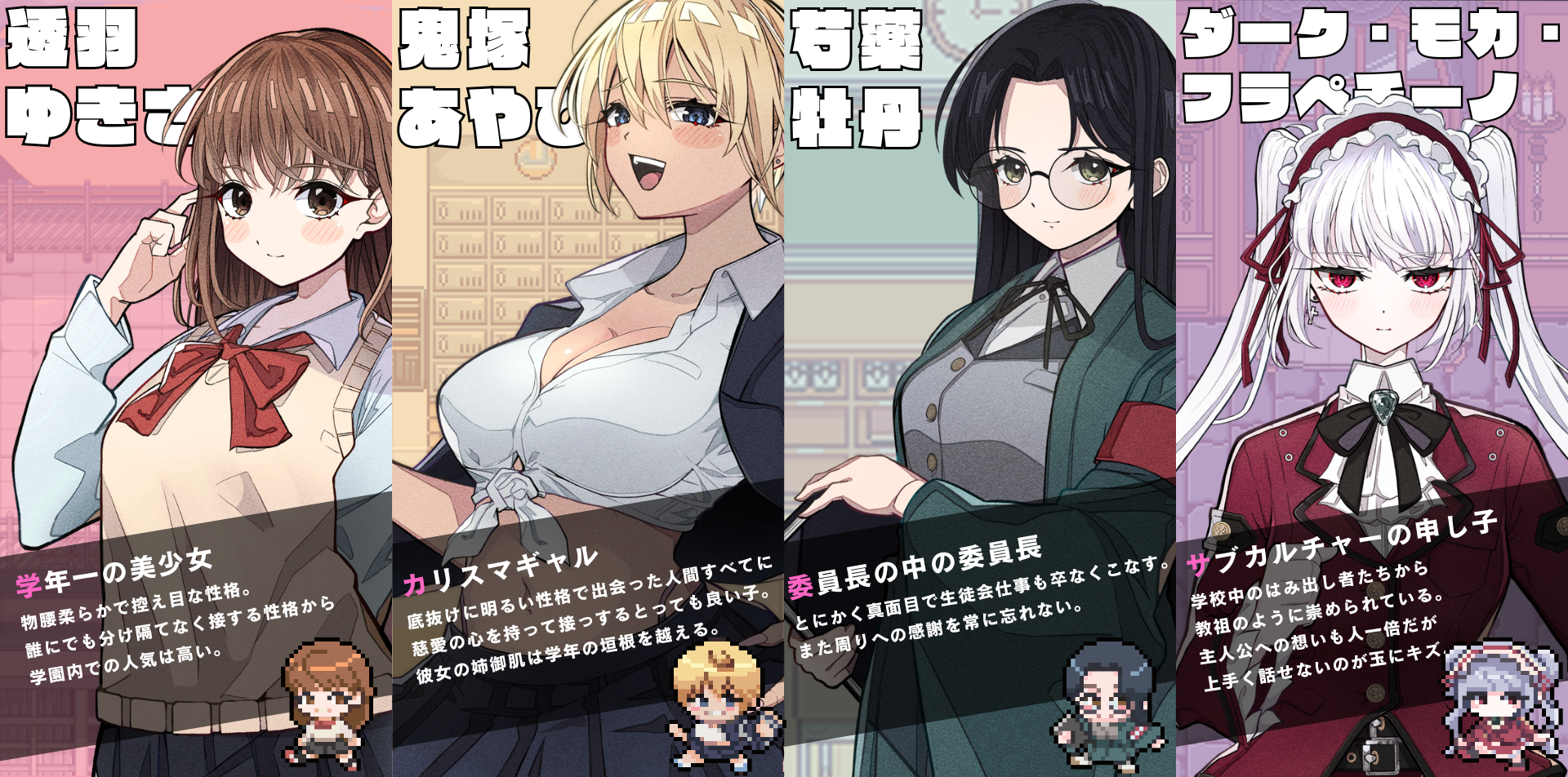 メインヒロイン4人を始め、他にも様々なキャラクターが主人公に迫ります。