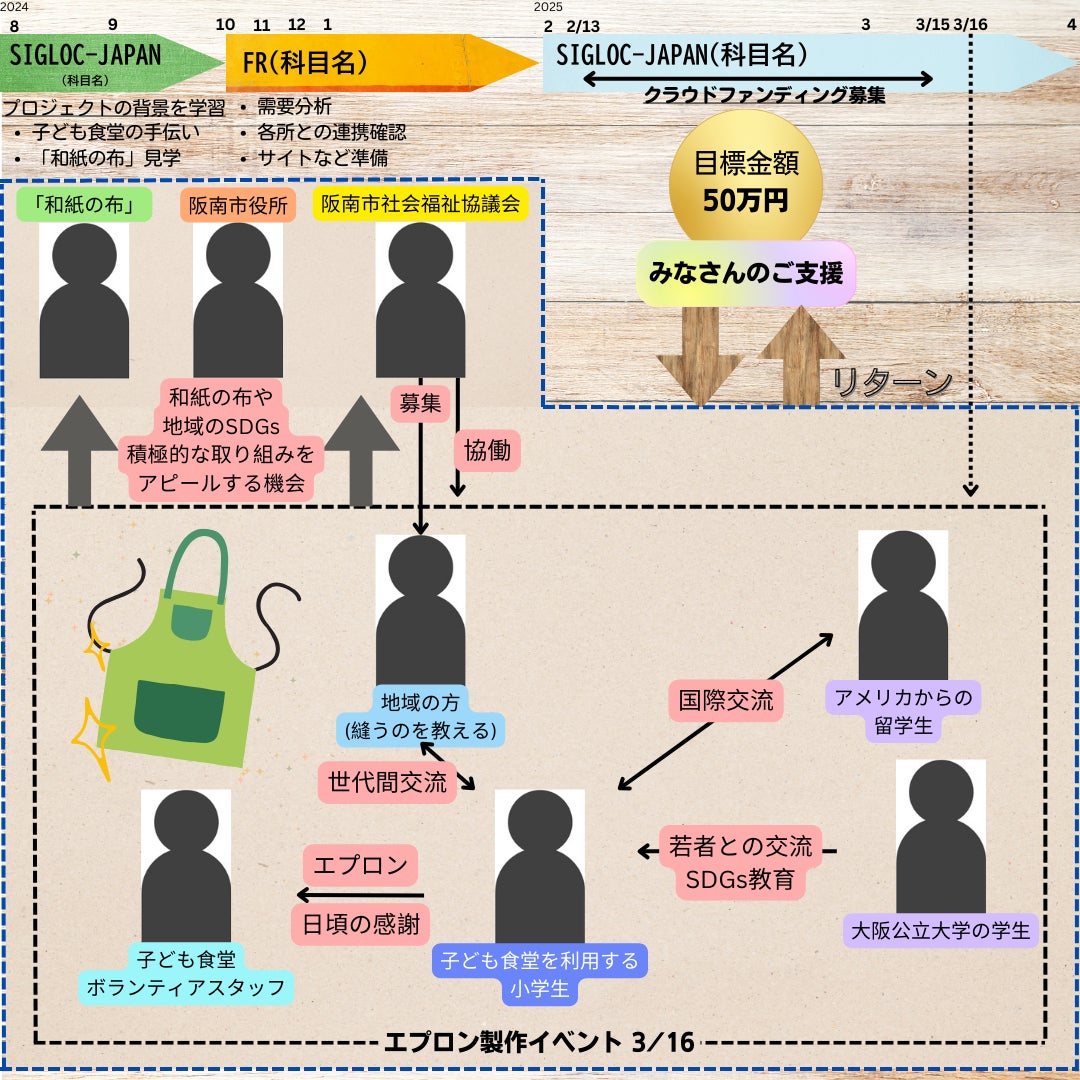 上の図がこの「Co-lorfulエプロンプロジェクト」の概要です!