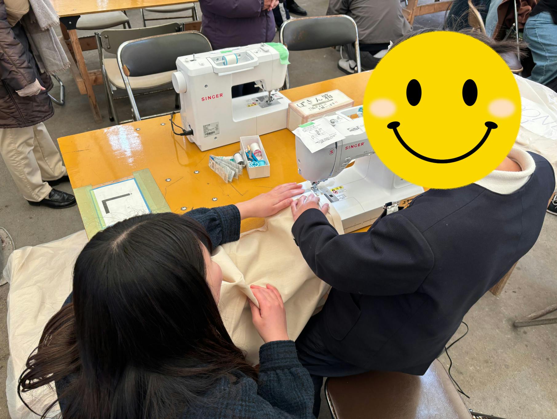 子どもたちが真剣な眼差しでミシンに向かい、友達や大学生、地域の方々と協力して製作を進める姿は、私たち学生にとっても何より感動的な瞬間でした。ミシンが使えない小さい子どもたちは、一生懸命にエプロンの紐通しを手伝ってくれました。このエプロンが、子どもたちの感謝の気持ちを伝える温かいユニフォームとなり、地域の皆さんと子どもたちがつながる場所である子ども食堂に一体感を生み出すことを願っています。