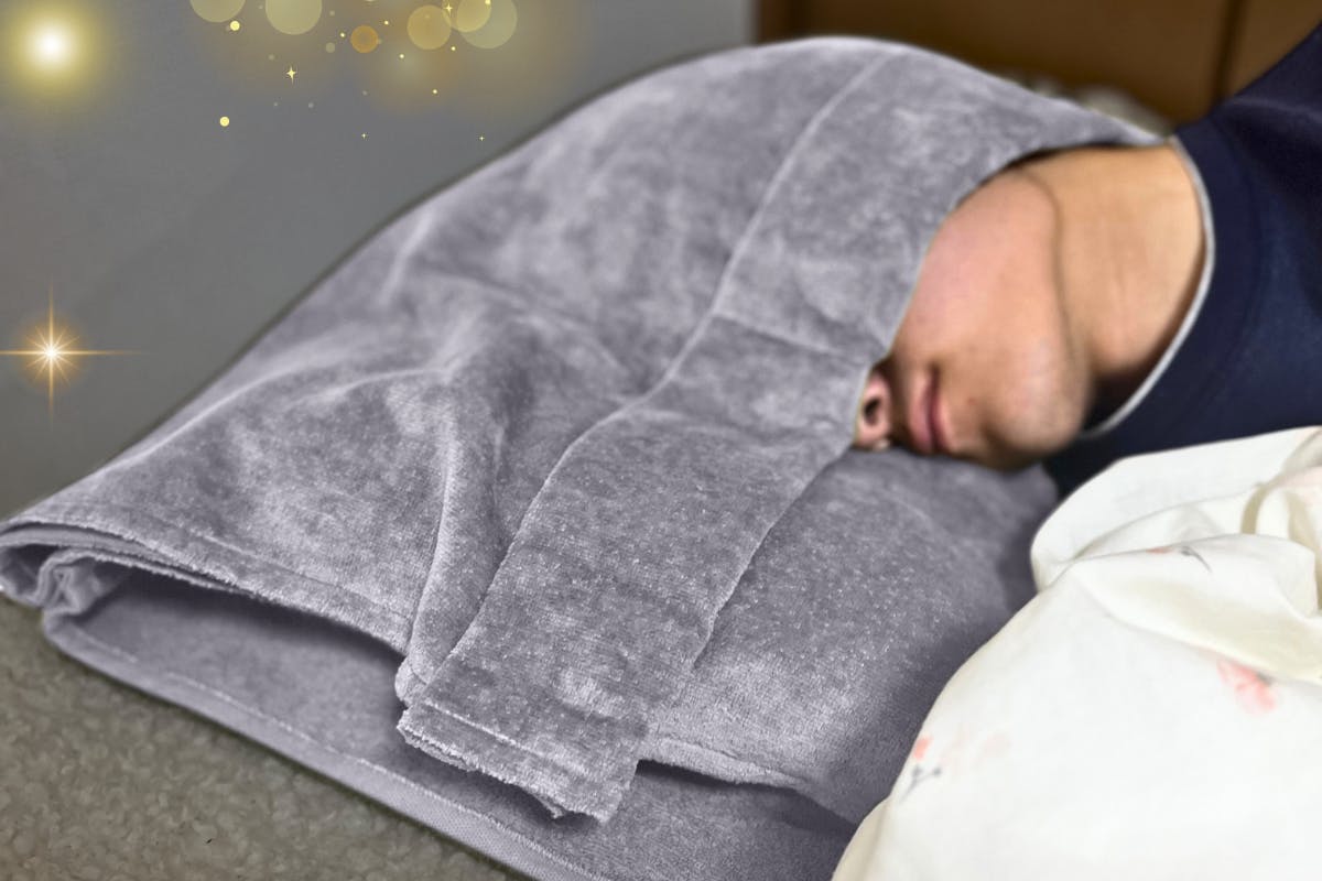 新生活にピッタリ!今治産タオル生地を使用し、ビロードのような感触と、ブラインドのように手で下げ下ろすアイカバーで日々の眠りを心地よく導く枕カバーをご提案します