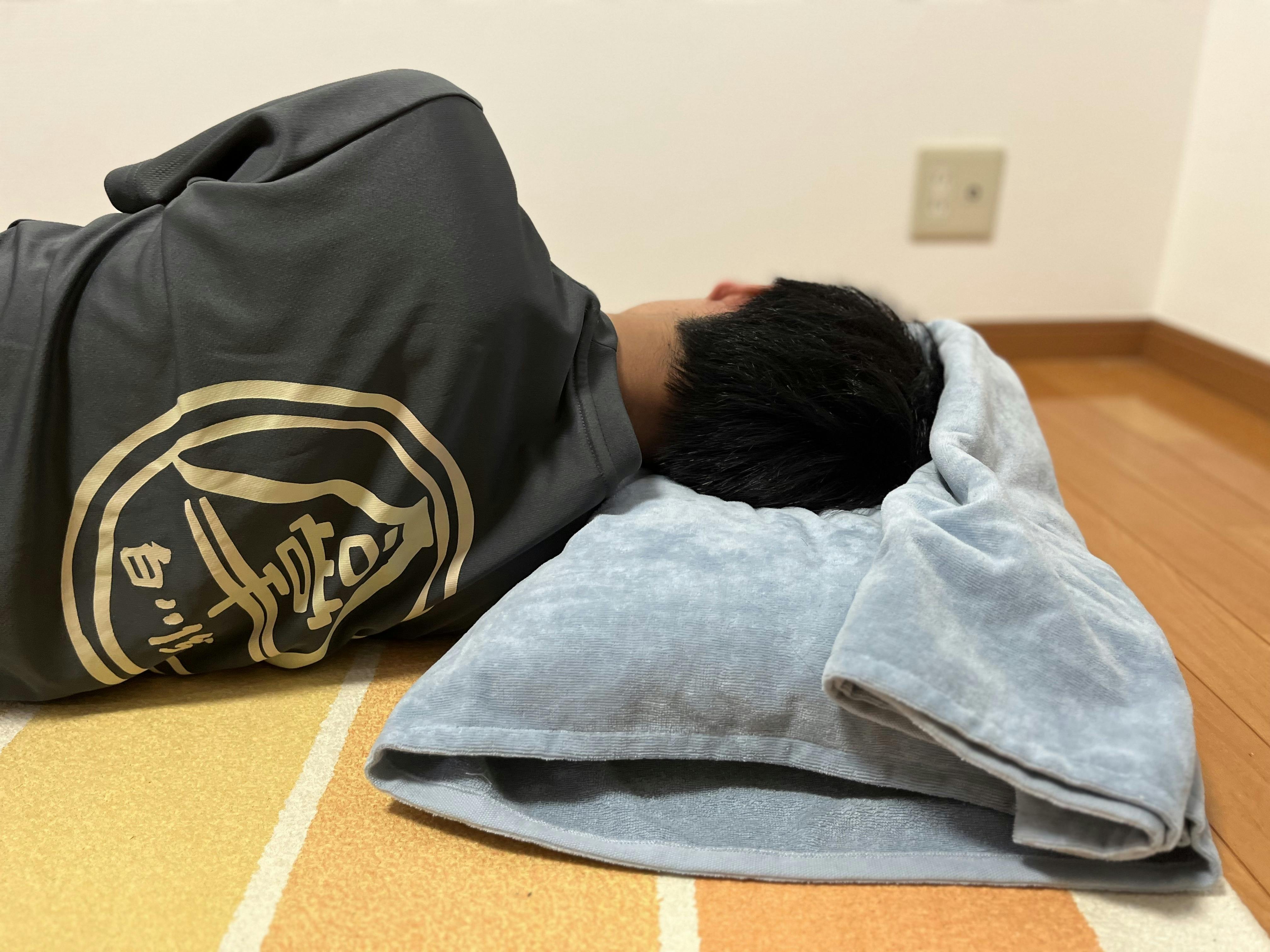 眠い。そんな時に限ってアイマスクを何処かに置いてしまう。そこでアイマスクを”つける”ではなく、布団のようにかける事にしました。枕についているので、もう探す必要はありません。ちょうどいい位置に自分で調整できます。