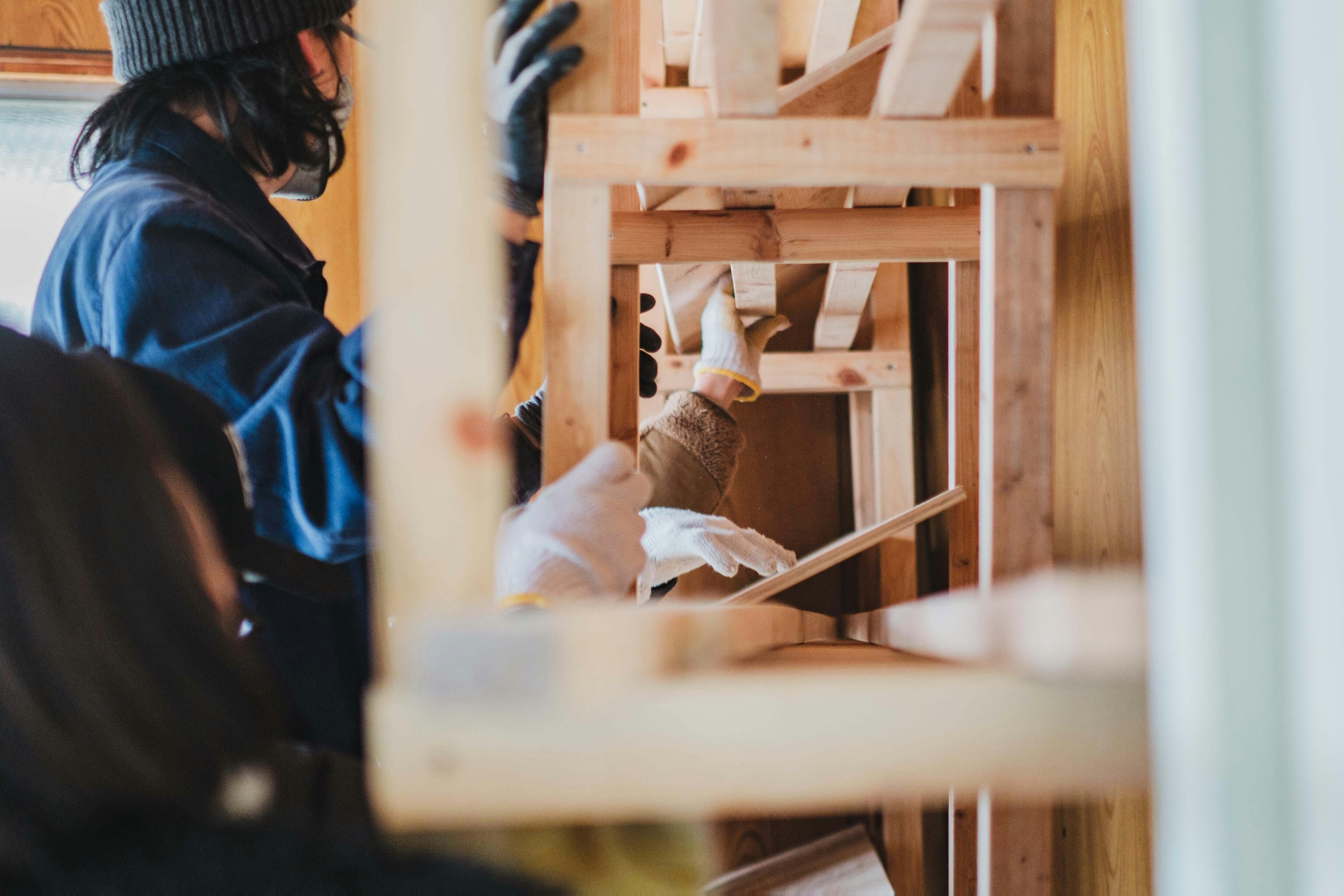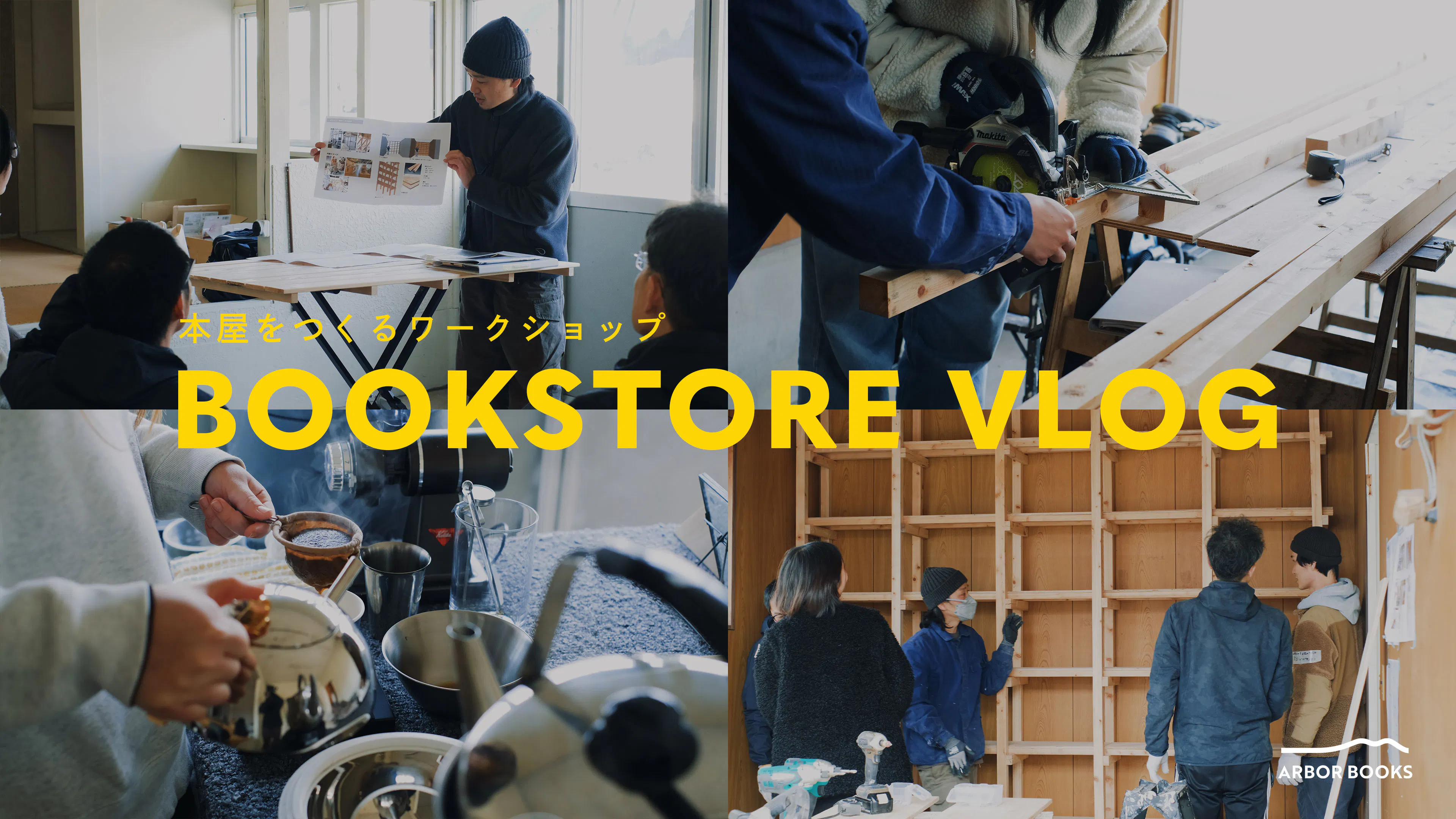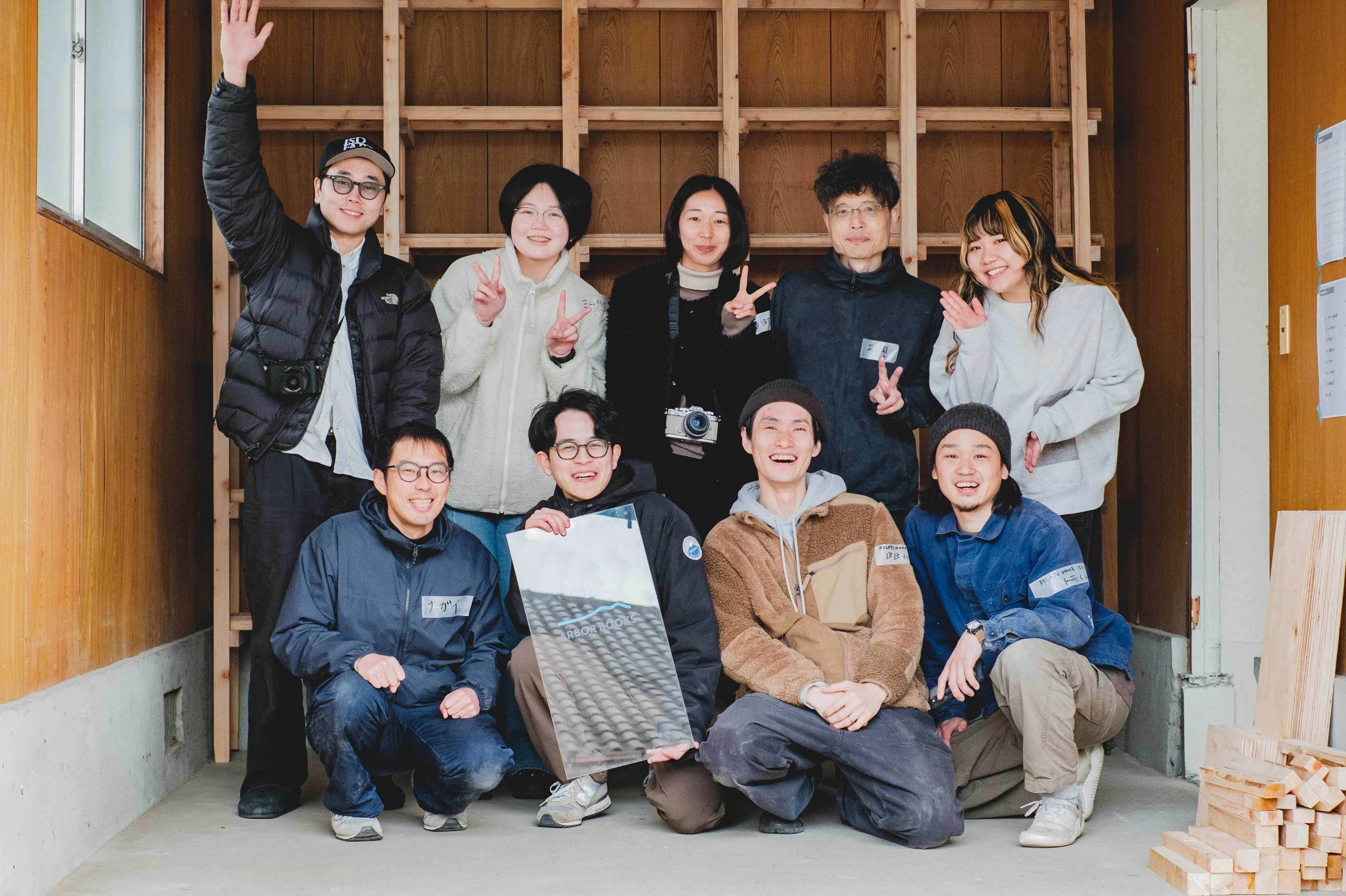 現在は空き家の大掃除をし、第1回目のワークショップを終え、まずはARBOR BOOKSの顔となる本棚をみんなで作りました!