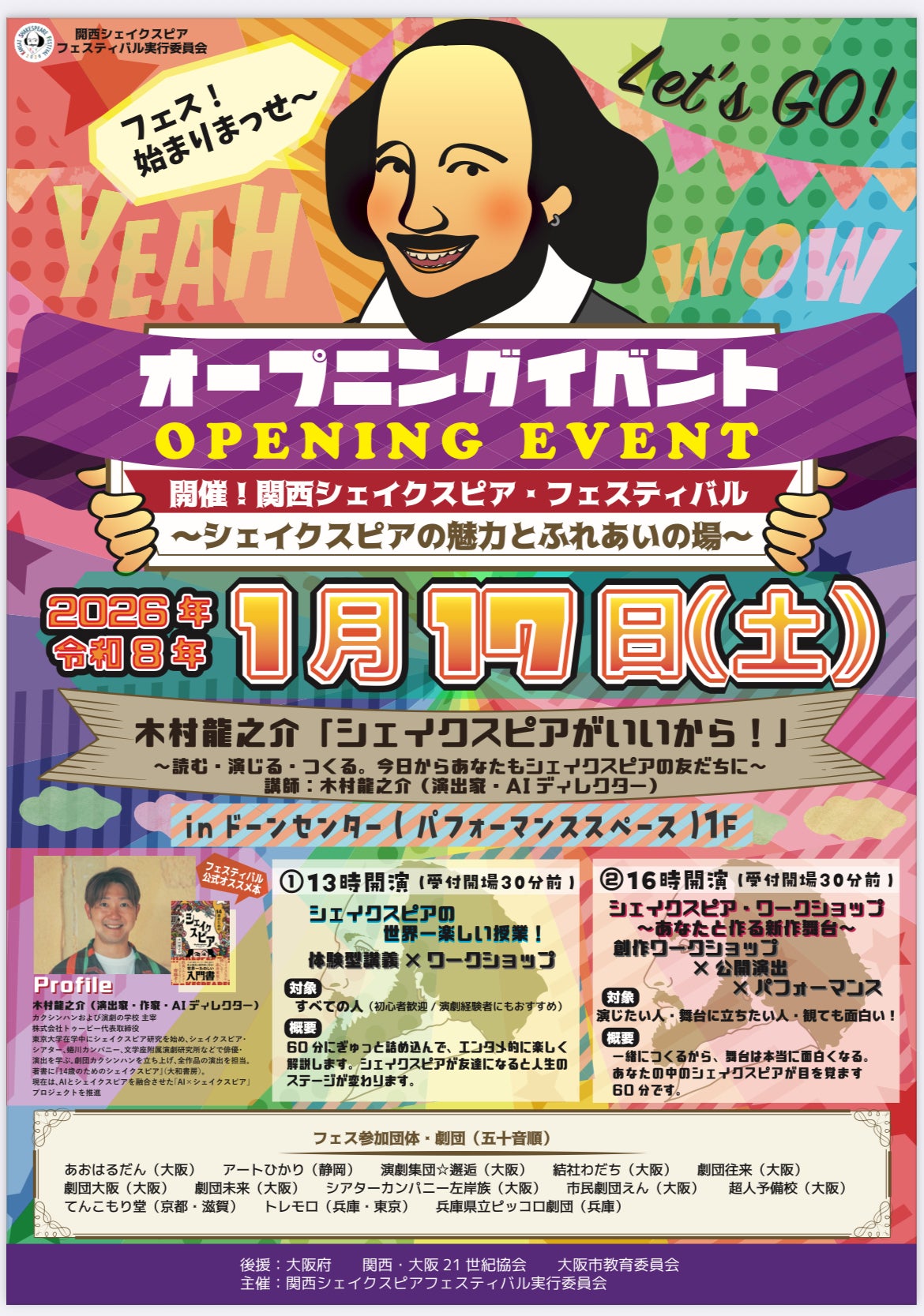 今回が関西史上初「シェイクスピア」の演劇フェスティバルになります!!