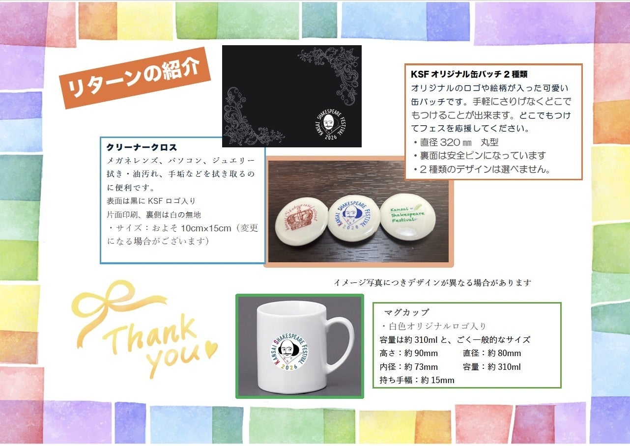 「関西シェイクスピア・フェスティバル」(KSF)の記念グッズの紹介