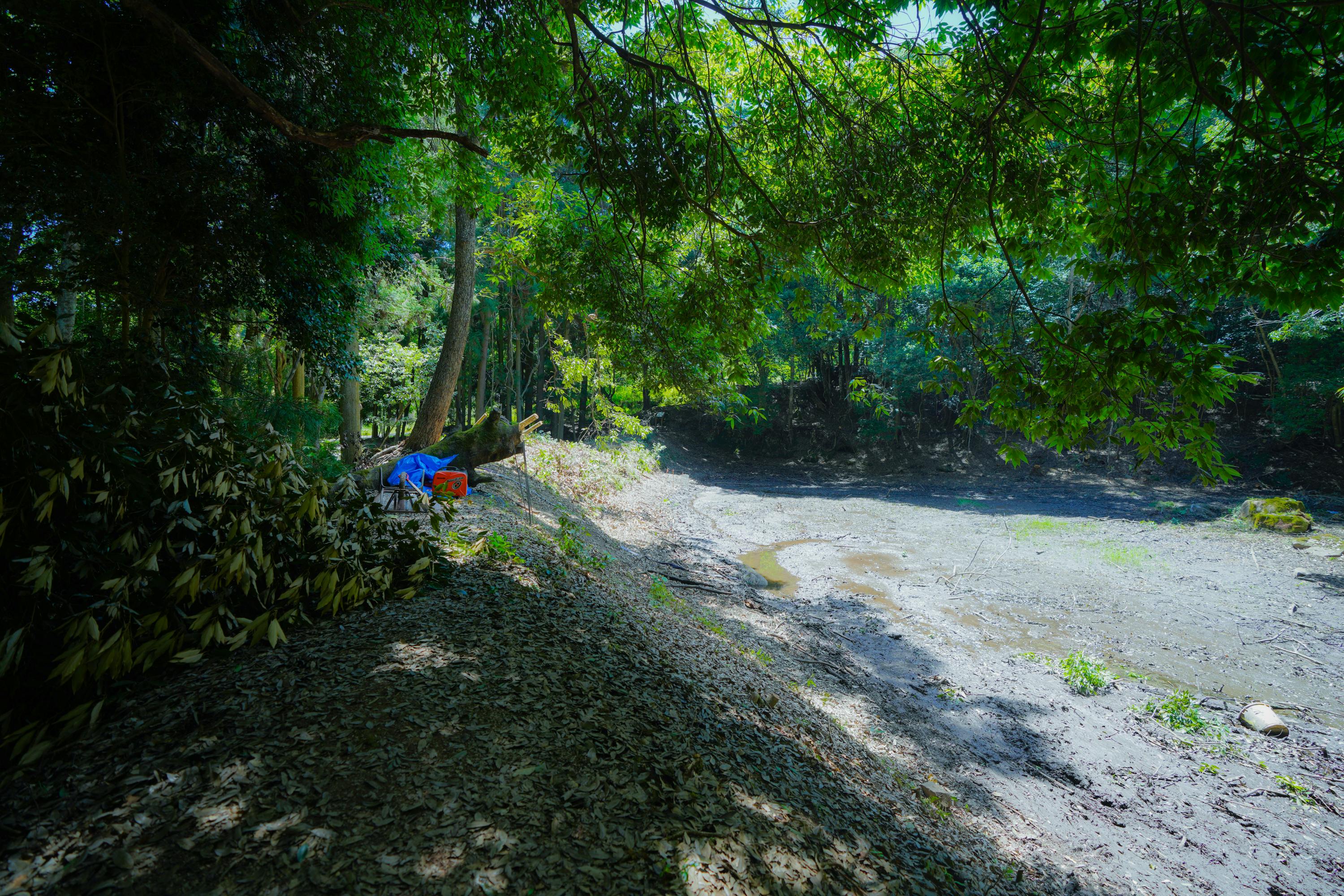 すっかり水が抜けた池 (2025/7/21)