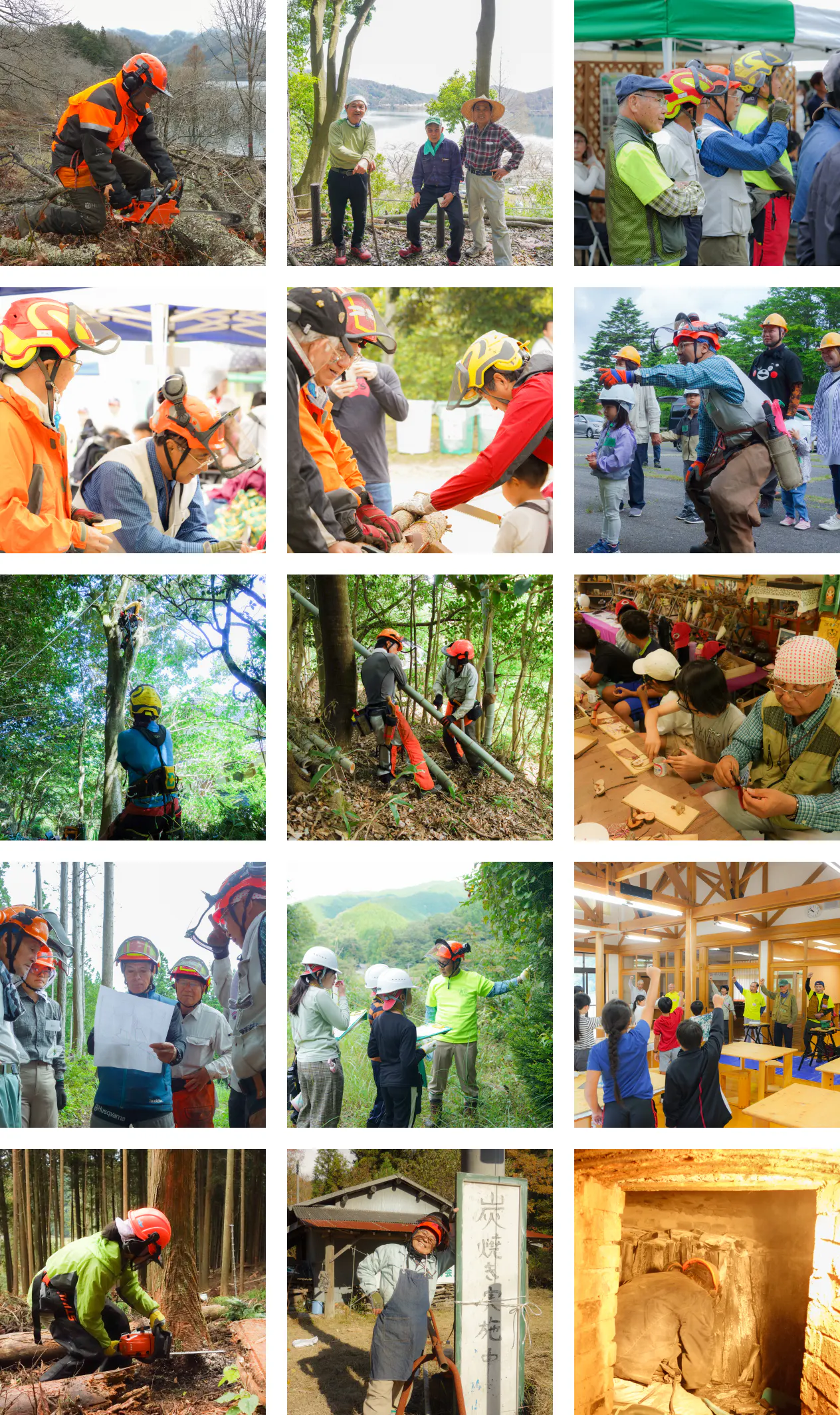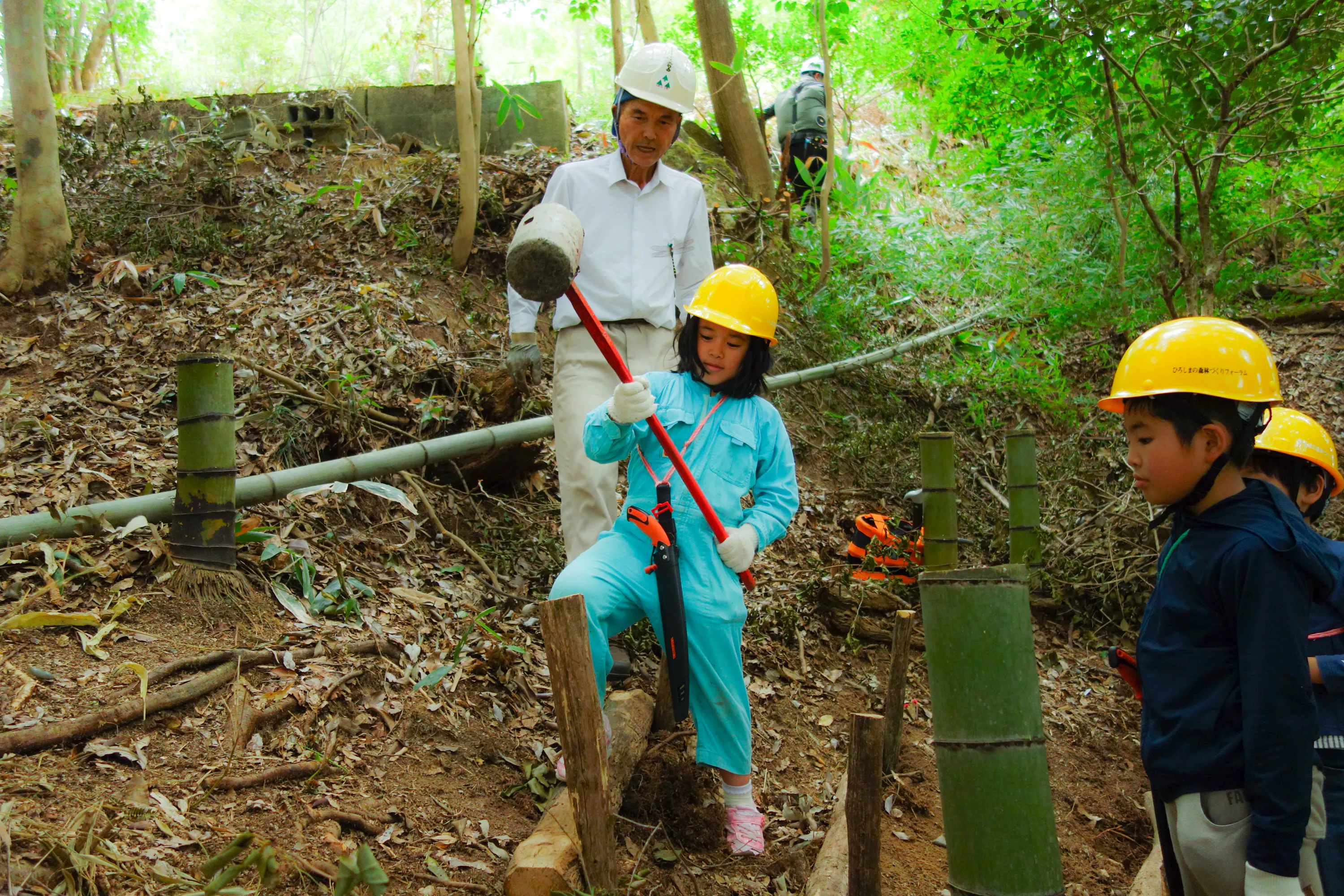 ・ 森林整備体験:実際に木を伐り、森と防災について学び、森と地域を守る体験。