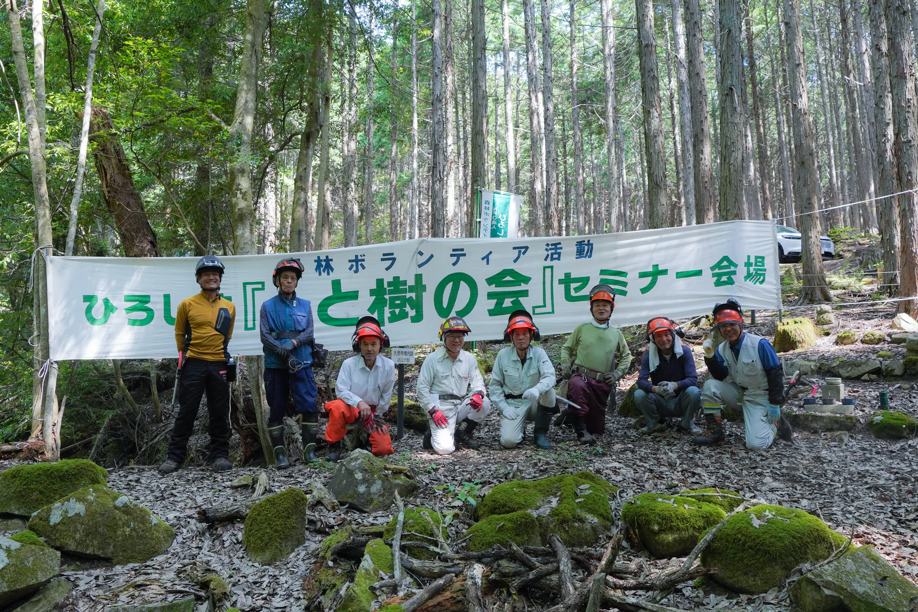 私たち「NPO法人ひろしま人と樹の会」は、1992年に広島市内の松枯れ伐採処理を目的とした森林ボランティア活動として設立されました。以来、「森を育てる」「人を育てる」「ボランティア精神を育てる」の三本柱を掲げ、広島県内および中国地方の森林を対象に活動を展開しています。