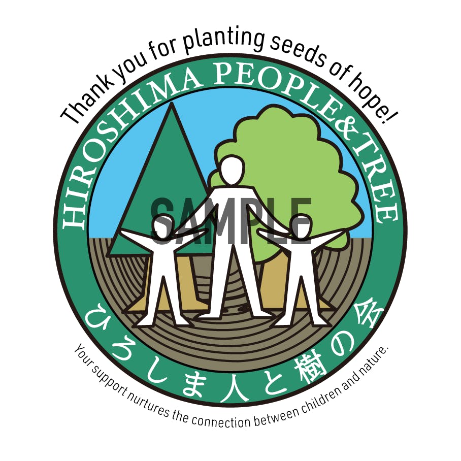 【内容】ひろしま人と樹の会のロゴにお礼メッセージを入れたクラウドファンディング限定オリジナルステッカーです。円形で10cm×10cmほどのサイズを予定しています。