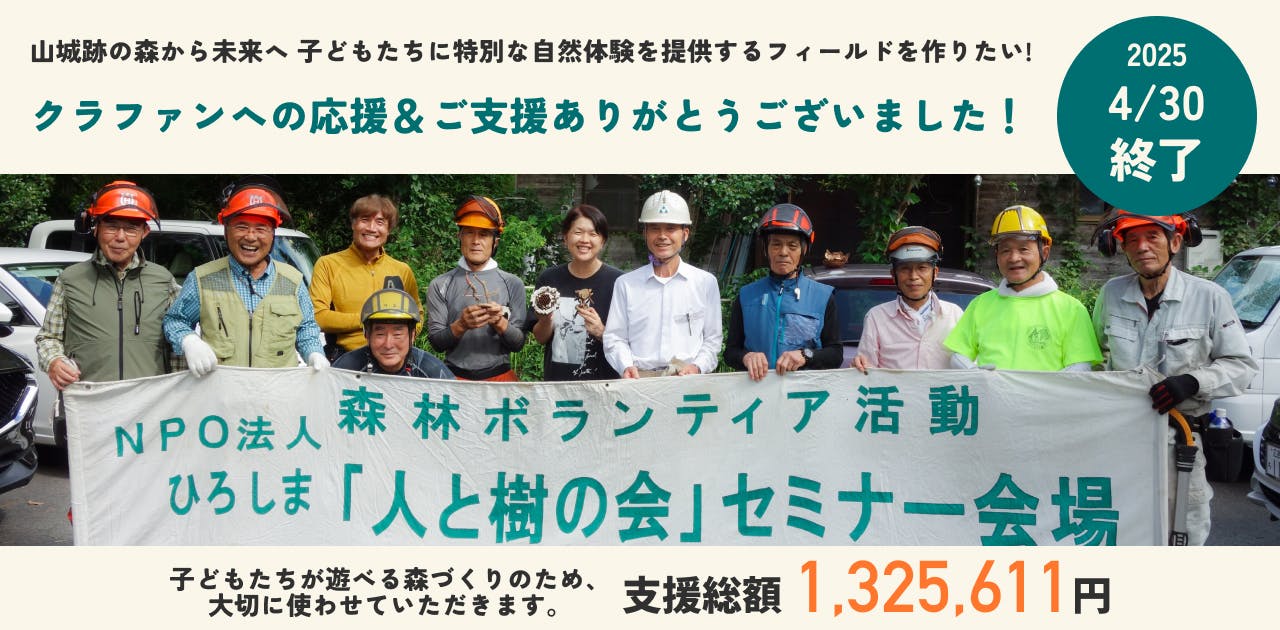 2025/05/11 08:45ご報告が遅くなってしまいましたが、こちらのプロジェクトは無事に終了いたしました。この2ヶ月間、本当にたくさんの方に応援していただきました。温かいメッセージをくださった方、ご支援という形で力を貸してくださった方──みなさんの優しさに、心から感謝しています。目標金額には届きませんでしたが、現金でのご支援も含めて、4月30日時点での最終的なご支援総額は1,325,611円となりました。改めまして、ご支援本当にありがとうございました。連休でお休みをいただいておりましたが、順次リターンの準備に取りかかります。実際の作業にご参加いただく方には、日程等の詳細について個別にご連絡いたしますので、もう少しお待ちいただければ幸いです。今回の舞台となった安芸高田市八千代の田屋城址周辺、土師ダムのあたりでは、新緑とダムの水面がとても美しい季節を迎えています。ぜひ、お天気の良い日にはふらりと足を運んでいただけたら嬉しいです。これからも活動のご報告を続けてまいりますので、引き続き応援をどうぞよろしくお願いいたします! もっと見る