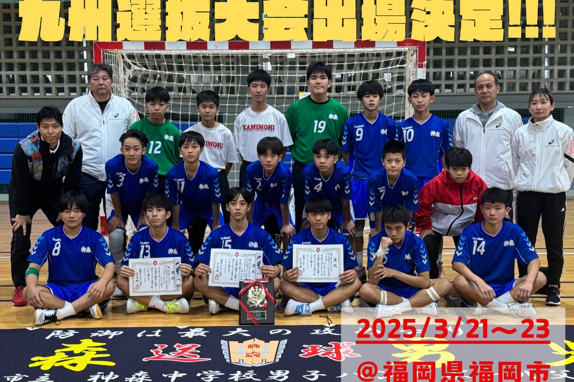 2025/03/26 23:53九州大会出場にあたり多大なるご支援を賜り、父母会一同、心から感謝と共に厚く御礼申し上げます。令和 7 年3月 22日(土)~23 日(日)に福岡県で開催されました『第 37 回九州中学生選抜ハンドボール大会』において優勝する事が出来ました。これも皆さまからの多大なる寄付金などのご協力を頂けたことにより、子供達の貴重な経験をさせて頂くことが出来ました。この結果に奢ることなく、夏の九州・全国大会に向けて切磋琢磨し目標に向け邁進して参ります。改めて心より感謝申し上げます。大会結果3月22日(土) 1 回 戦・神森 対 神埼(佐賀県) 42 - 9準々決勝 ・神森 対 加納クラブ(宮崎県) 30 - 203月23日(日) 準決勝・神森 対 春吉(福岡県) 26 - 18 決勝・神森 vs 浦添(沖縄県) 25 - 24 もっと見る