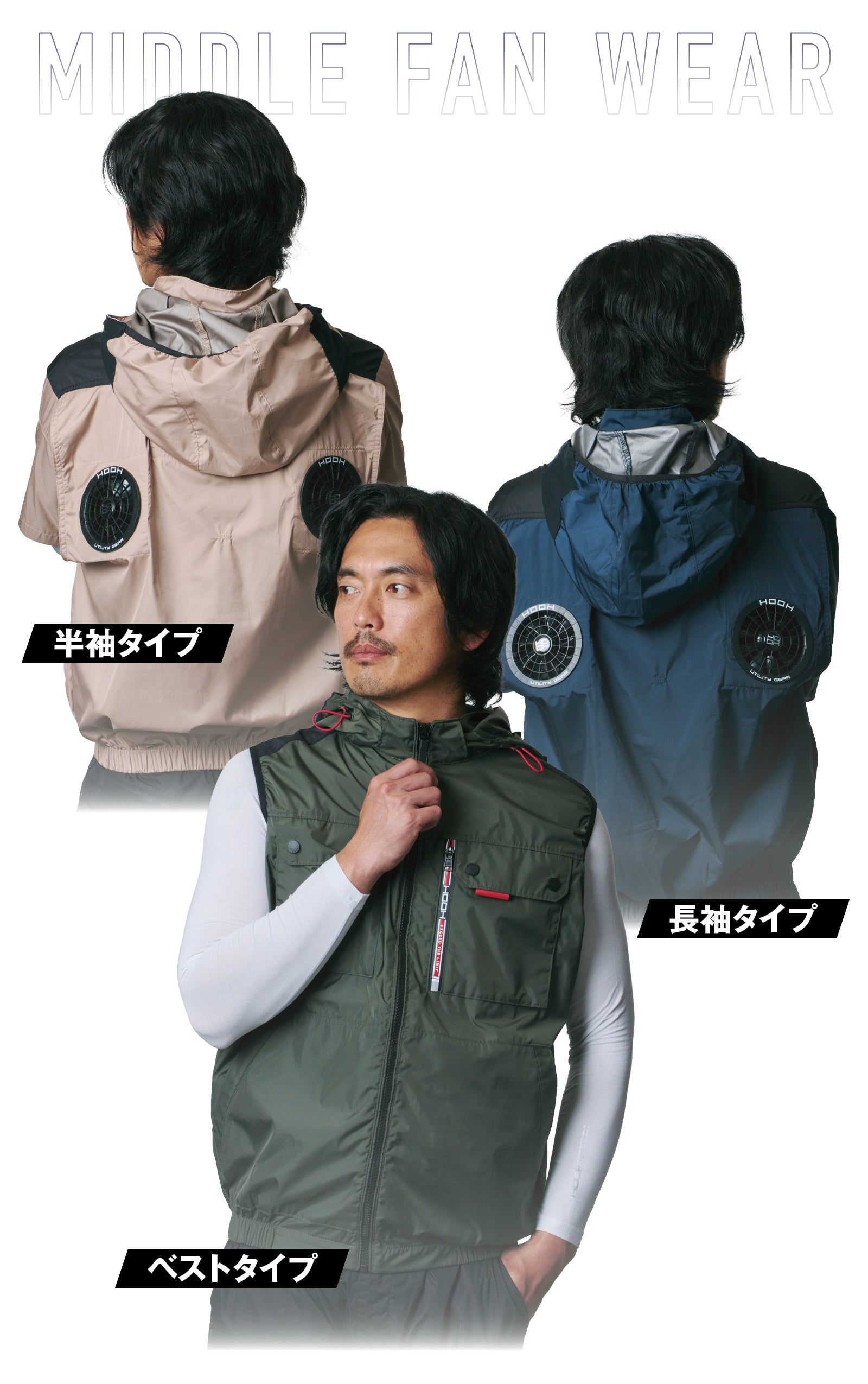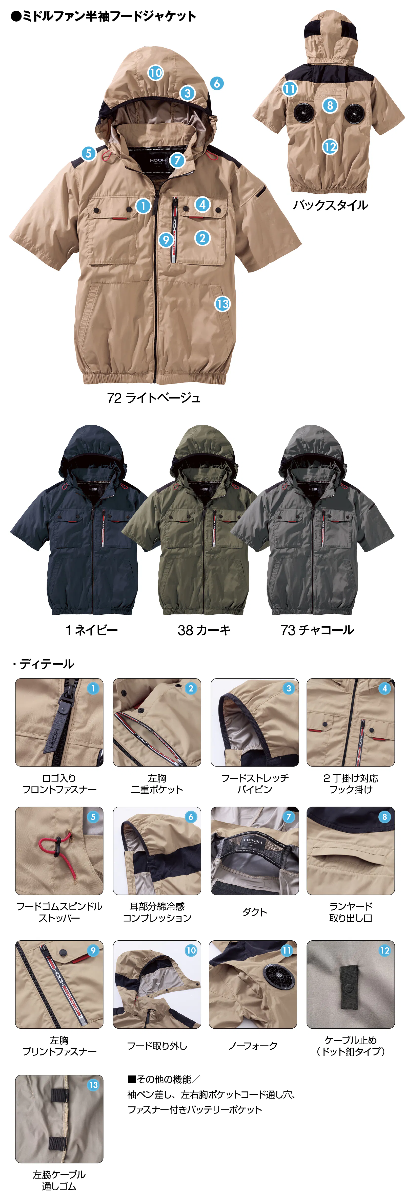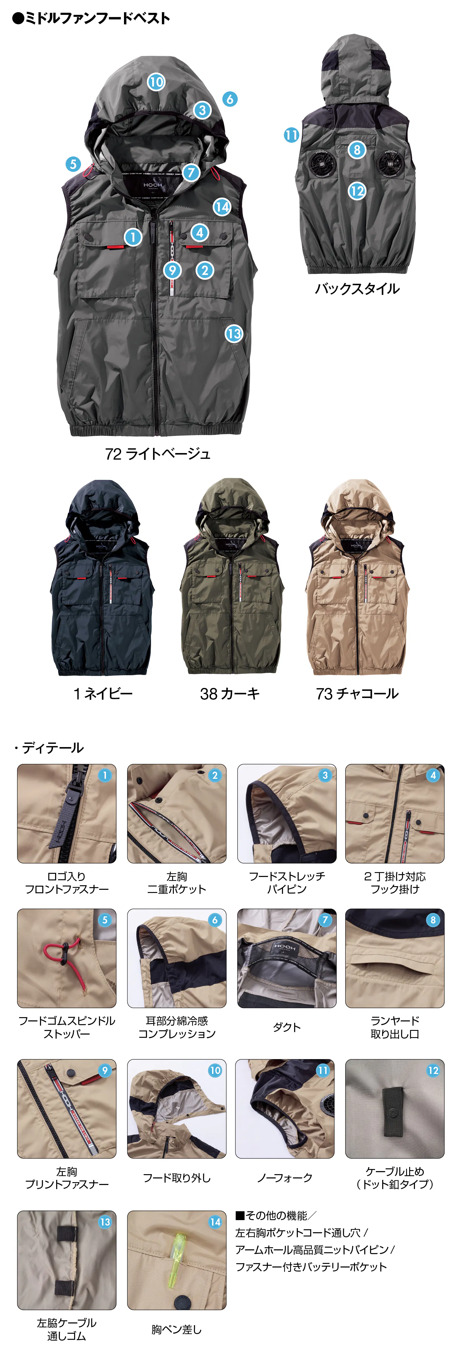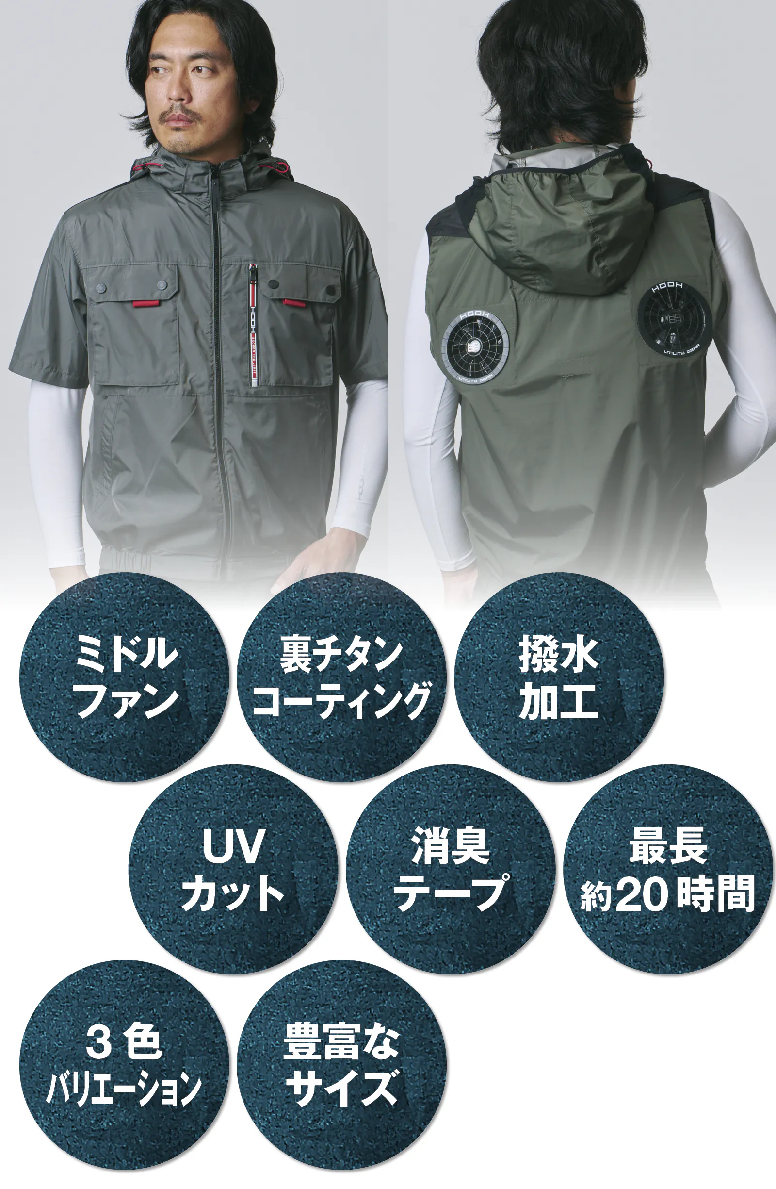 真夏の屋外と言えば、紫外線。ミドルファンフードジャケット&フードベストはUVカット仕様なので、屋外での作業やレジャーに最適です。