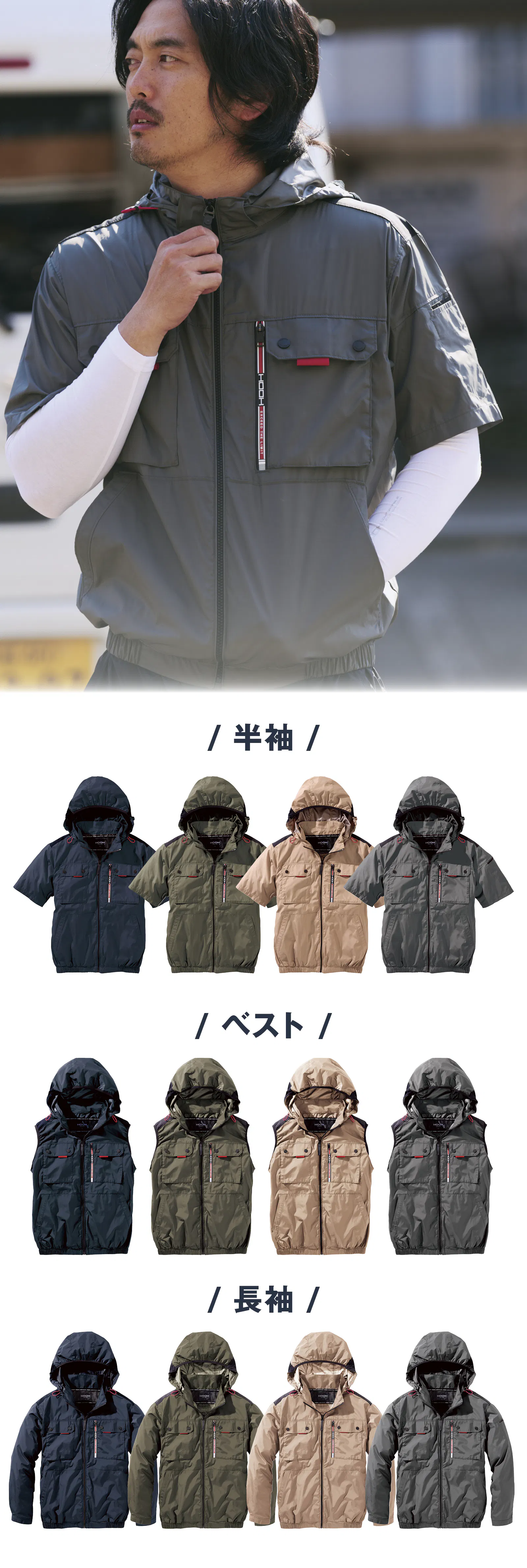 半袖、ベストからお好きな方を。カラーも4色のバリエーション。