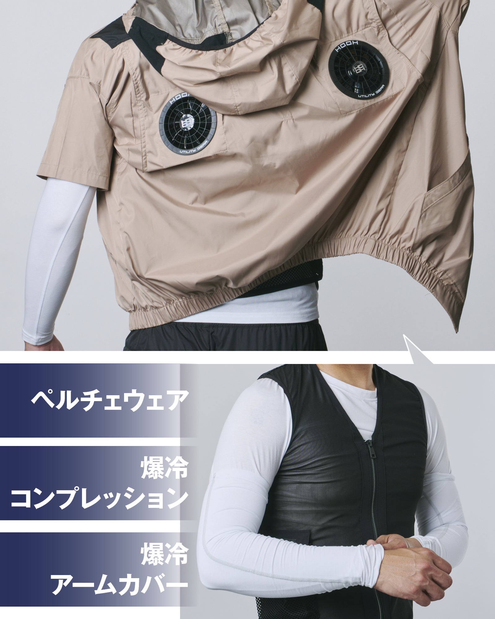素肌でも身に着けることができる冷感ウェアと合わせれば、さらに快適に。ペルチェデバイス付きウェアと合わせても、さらに快適に。