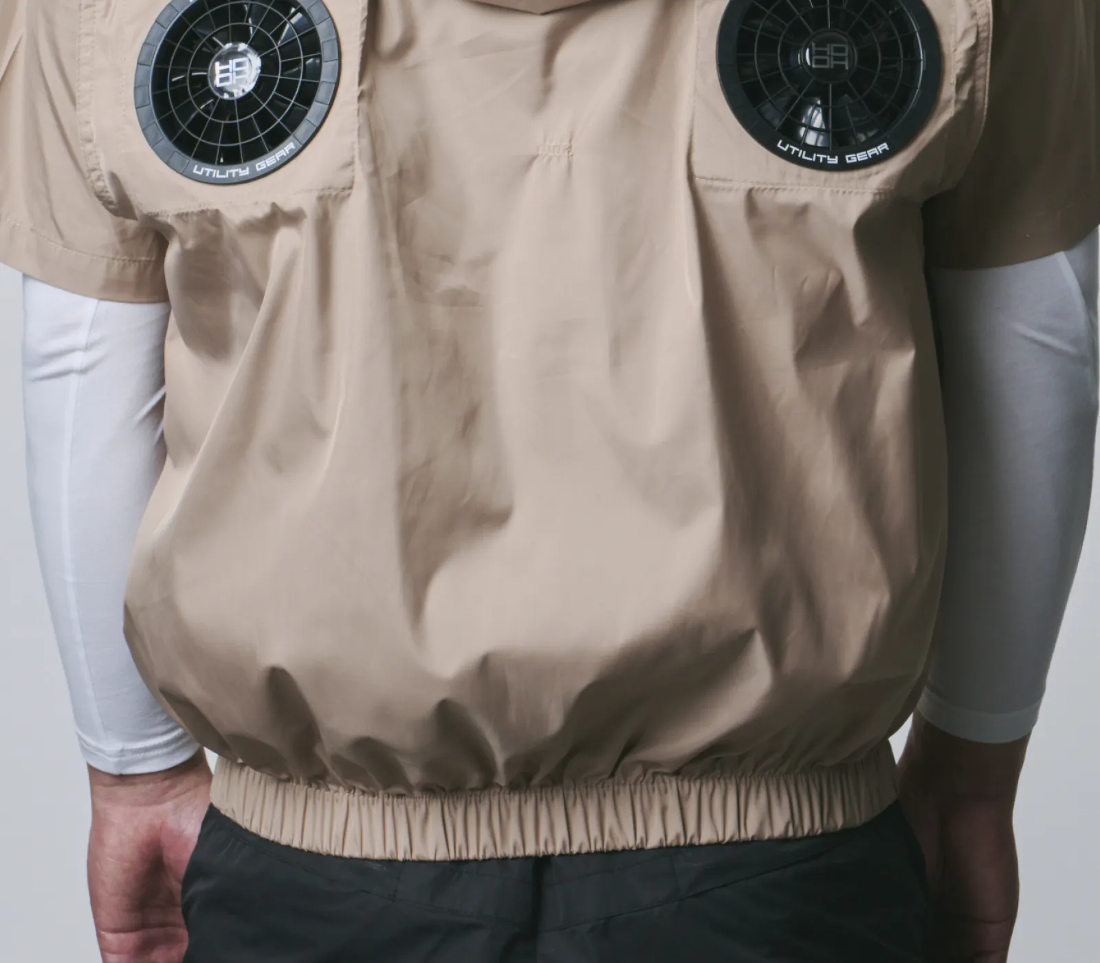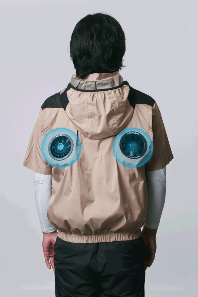 ファンの風を逃がさない裏チタンコーティング、-9℃遮熱効果。柔らかい着心地で動きやすく、屋外でも屋内でも快適に過ごすことができます。