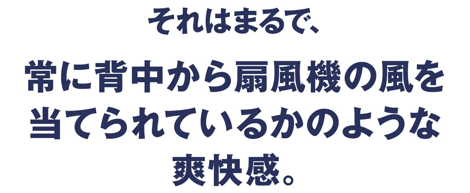 従来は脇腹や腰のあたりに設置するのが一般的だった「ファン」を、左右の肩甲骨の下あたりにレイアウトすることで、さらなる涼感をアップ。皆さまの常識を覆す、新発想のファン付きウェアとなっています。