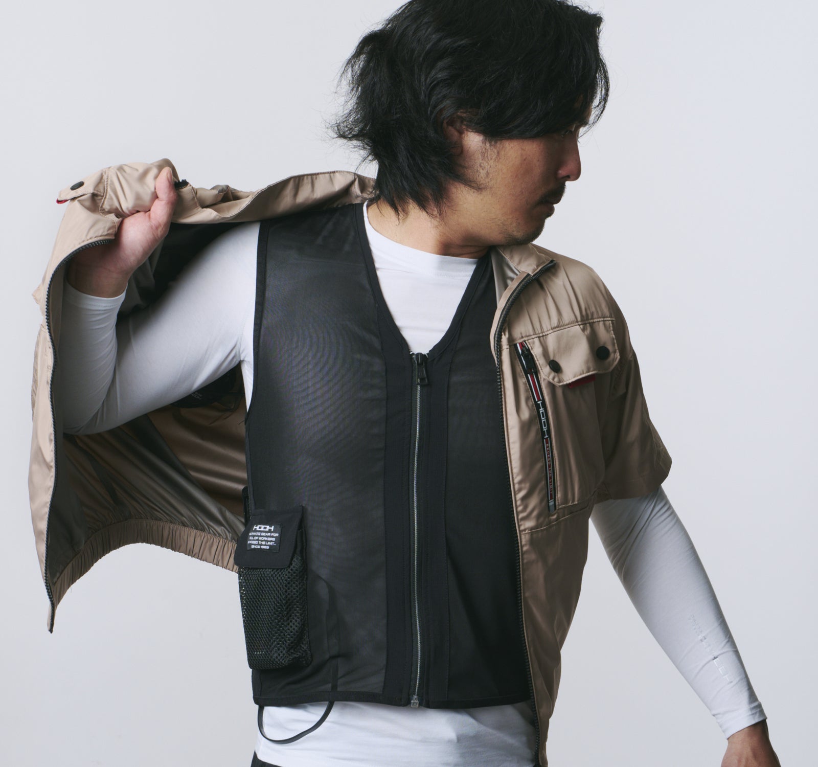 仕事着としての機能性を追求しつつも、カジュアルに着こなしていただけるファッション性も兼ね備えた、いつでも使える「暑さ対策」の必需品。単体としてはもちろん、これまでにご紹介した弊社のペルチェベストや涼感インナーと組み合わせていただければ、さらに効率よく体を冷やすことが可能です。