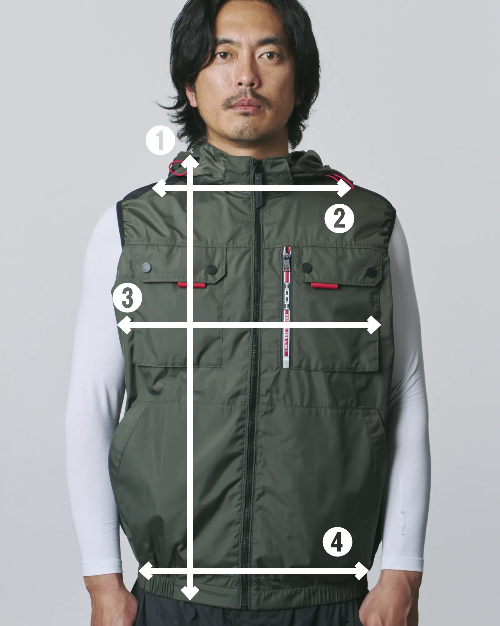 従来のファン付きウェアでは、ファンやバッテリーポケットは腰や脇腹といった「下部」に集中していたため、仕事や作業で動いていると振り子の原理で「重さ」を感じることがありました。でも、ミドルファンジャケット&ベストではこれらか「上部」に集まっているため、重さで裾が引っ張られることがありません。