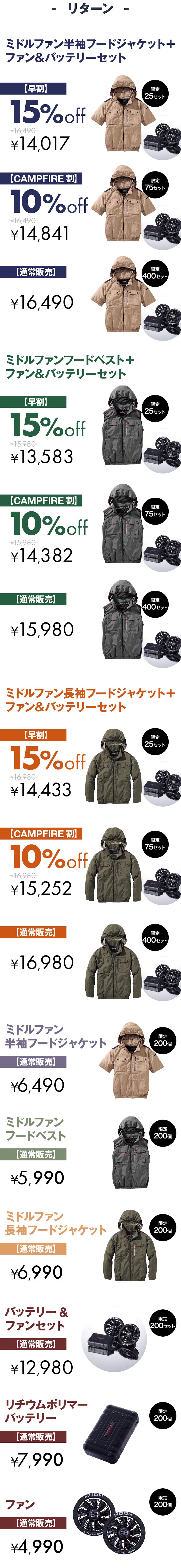 なお、純正品以外のバッテリー、ファンをご使用の場合、動作不良や不具合が生じましても、メーカー保証の対象外となりますので、あらかじめご了承ください。