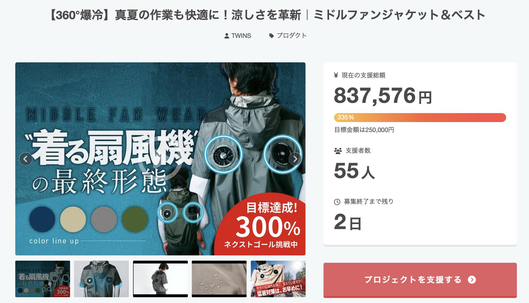 大好評いただいている着る扇風機「ミドルファン」のクラウドファンディングも、いよいよ残り2日となりました!
