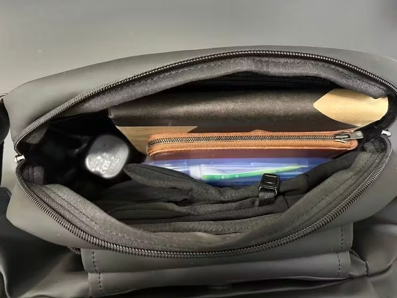 撥水性に優れたPUレザー生地で、水に強い素材です。防水ではないため長時間濡れることは避けてください。