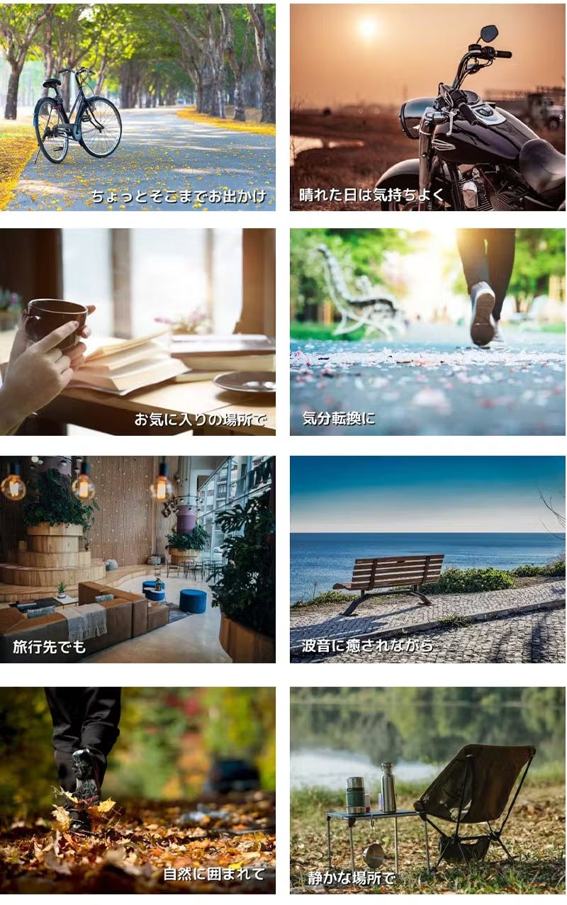 旅行、散歩、買い物、ツーリング、サイクリングなど、あなたのアクティブな時間を増やし、休日のお出かけをよりお楽しみください。