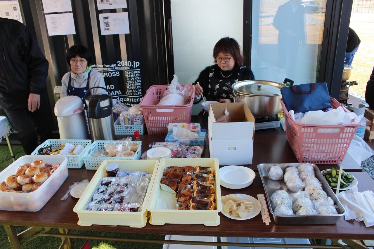 当日は豚汁やおにぎり、地元のしじみの味噌汁にデザートなど軽食をご用意して、訪れた方と温かいものを味わいながら時間を過ごしました。