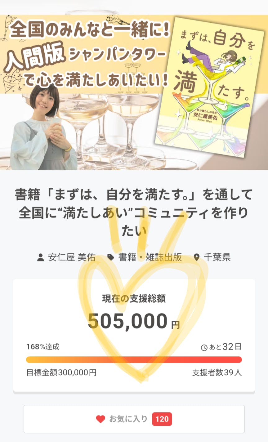 全国行脚&出版イベントを皆がワクワクする場所で、1人でも多くの仲間とシャンパンタワーを創りあげるために、【総支援者数100名、総支援額100万円】を目指します!