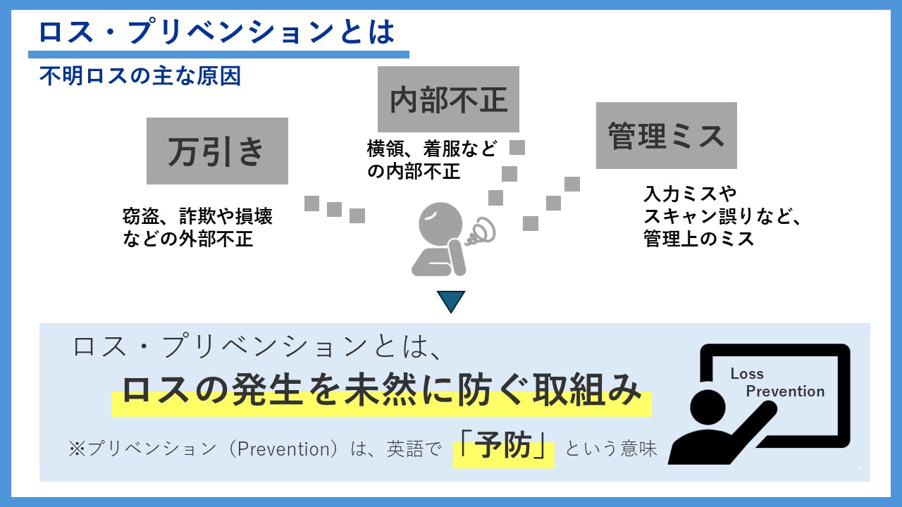 また、小売事業者は万引きだけでなく、「管理ミス」や「内部不正」による利益損失にも悩んでいます。このため、これらの問題を防ぐための「ロス対策」が求められています。ロス対策とは、万引きを含む店舗での不正やミスによる利益の損失を防止する取り組みです。欧米では「ロス・プリベンション」として広く研究されており、特に、アメリカでは、NPO法人「Loss Prevention Foundation」(LPF)がロス対策の専門資格試験制度(LPQ、LPC)を設け、知識の共有と具体的な対策の普及を進めています。