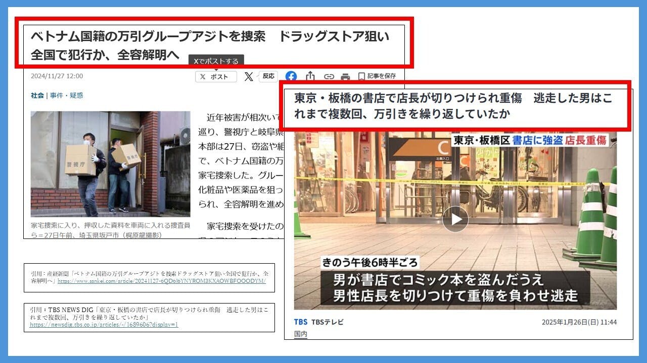 かつては身近な犯罪とされていた万引きが、近年では外国人らによる組織的・広域的な大量窃盗や、換金目的で行われる職業的な窃盗が増加しています。そして、万引きは強盗に至るケースも見られ、その対策が急務となっています。