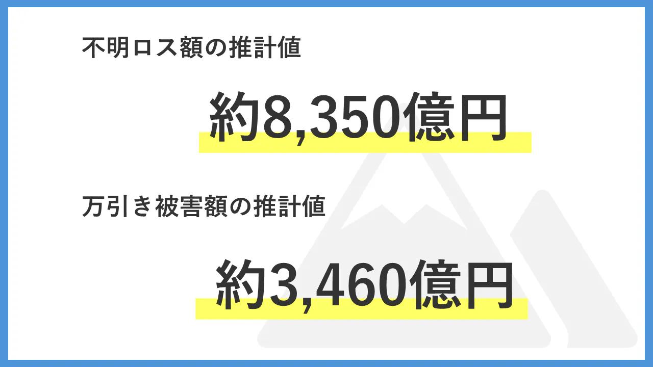 当機構の調査から小売業における不明ロス額・万引き被害額は下記のとおり、推計されます。