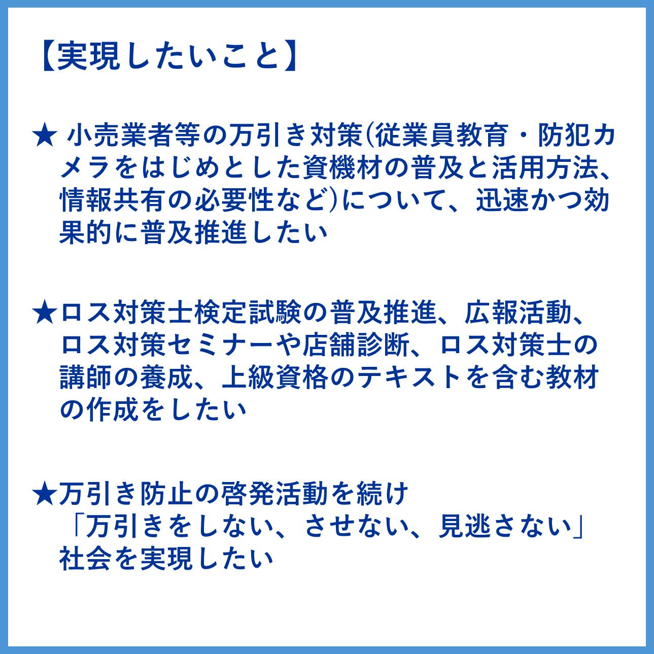 まずは、私たちの活動や「ロス対策士検定試験」を知ってもらい、万引き対策や不明ロス対策を広げていきたいと考えています。そして、多くの方に「ロス対策士検定試験」を活用していただきたいです。